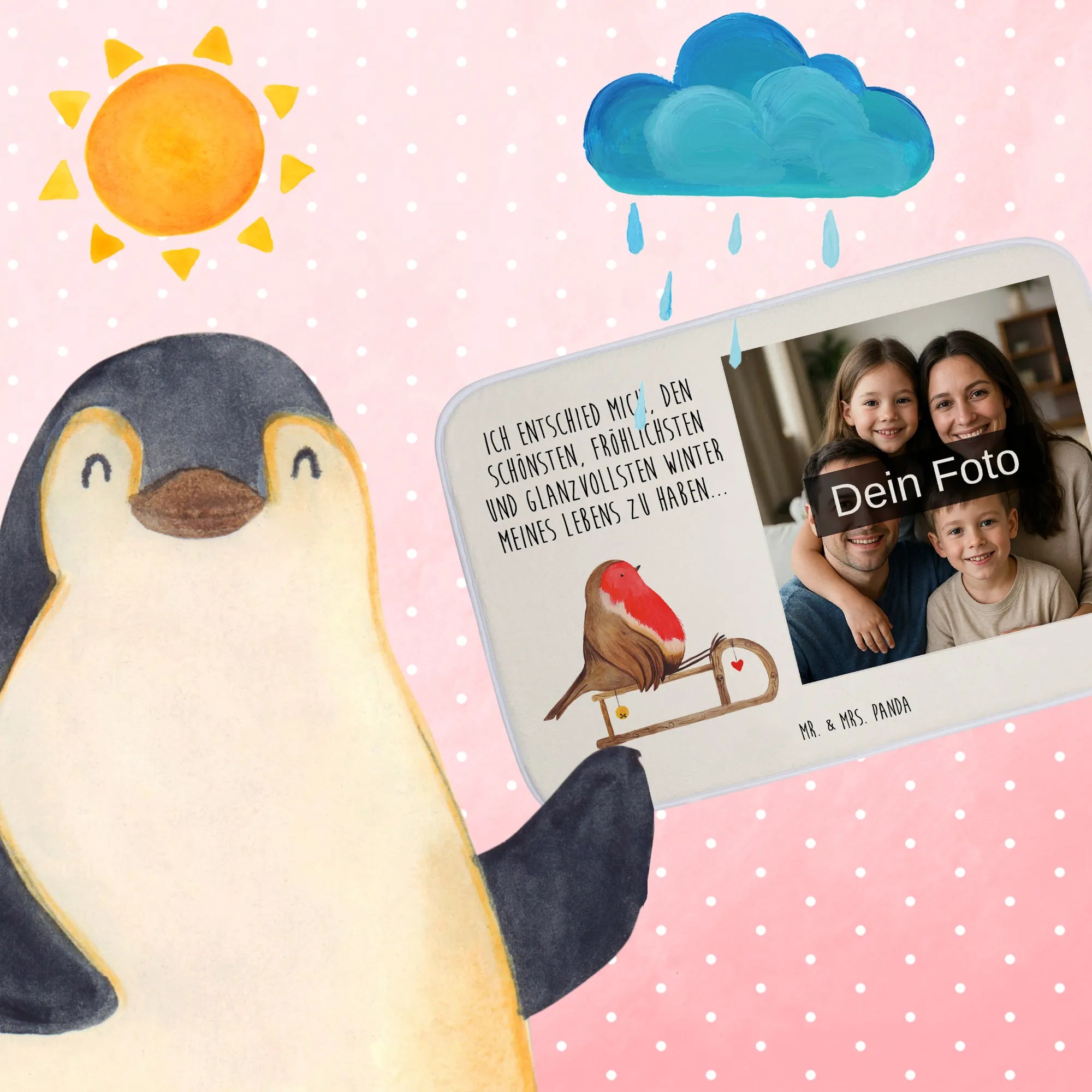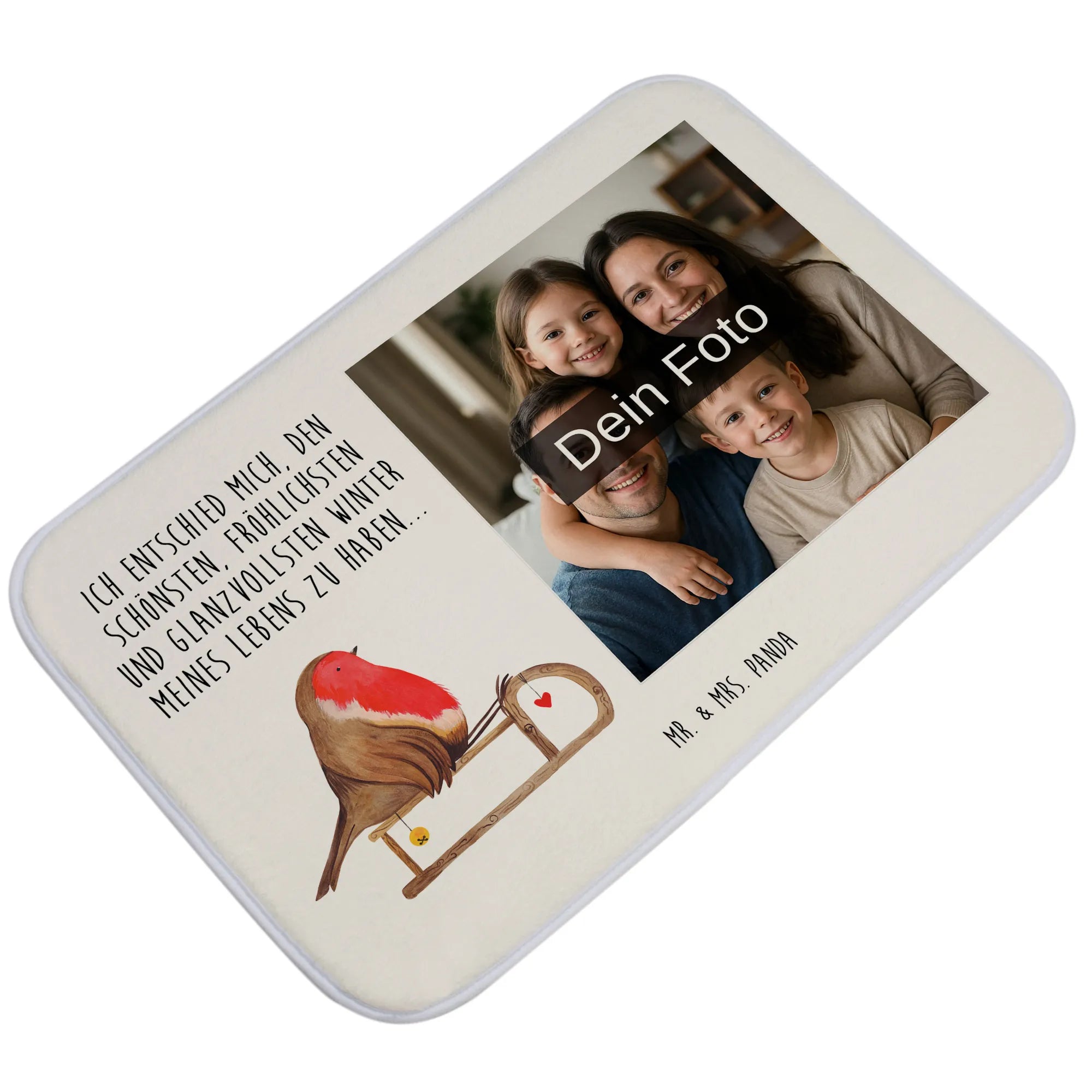Personalisierte Foto Badematte Rotkehlchen Schlitten