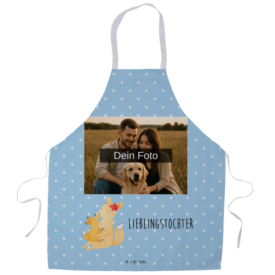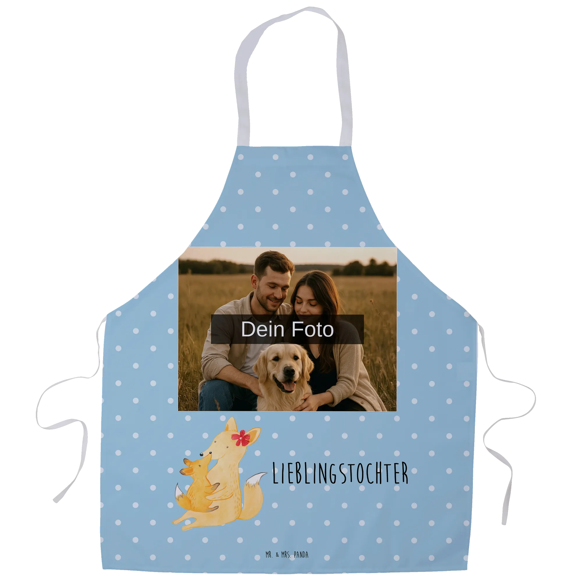 Personalisierte Foto Kochschürze Fuchs Mama - Blau Pastell