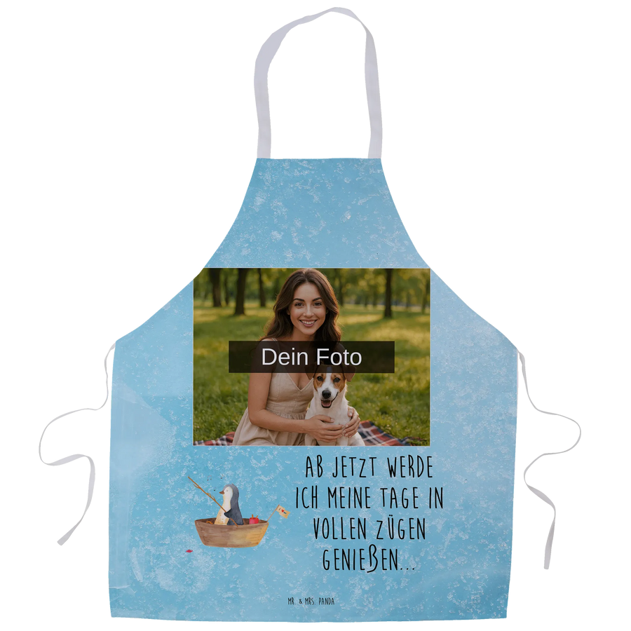 Personalisierte Foto Kochschürze Pinguin Angelboot