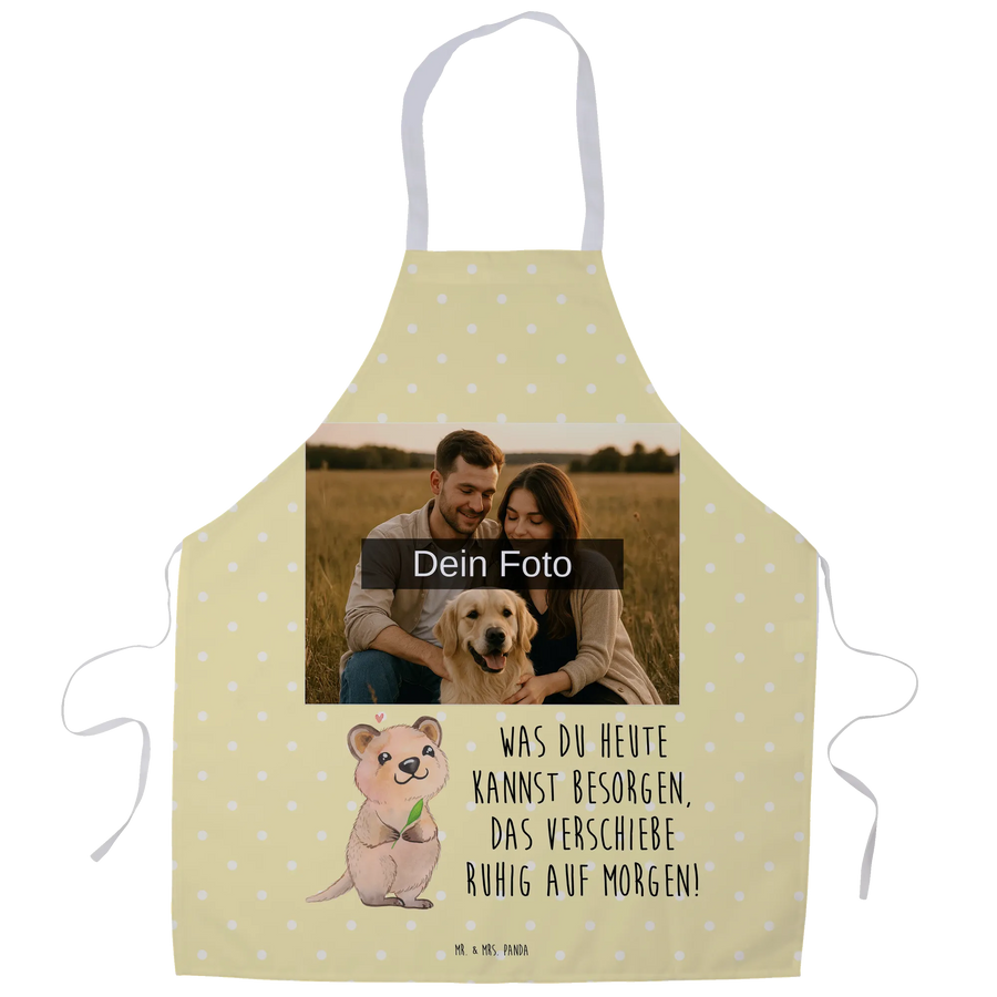 Bereite liebevoll die besten Gerichte zu mit der personalisierten Foto Kochschürze von Mr. & Mrs. Panda! Diese Schürze bietet dir nicht nur Schutz vor Spritzern, sondern auch eine Portion Stil. gefertigt aus hochwertiger Premium Kunstfaser, misst sie 950 mm x 700 mm und hat zusätzlich eine 950 mm lange Nackenschlaufe. Sie wird mit wundervollen, süßen Motiven und witzigen Sprüchen verziert, während du sie ganz nach deinem Geschmack mit einem Wunschfoto personalisieren kannst. Achte darauf, dass dein Bild in hoher Auflösung vorliegt, um bestmögliche Druckergebnisse zu erzielen. Es ist wichtig, den Bildausschnitt gut zu wählen und nur Bilder hochzuladen, für die du die Rechte hast. Mit stabilen Nackenschlaufen gewährleistet sie den optimalen Sitz, während die samtweiche Oberfläche ein gemütliches Kochen ermöglicht. Der große Fronttasche sorgt dafür, dass alles Wichtige griffbereit ist. Leicht pflegbar, einfach in die Maschine bei 30°C geben. Eine tolle Geschenkidee für Freunde und Familie, die gerne kochen!