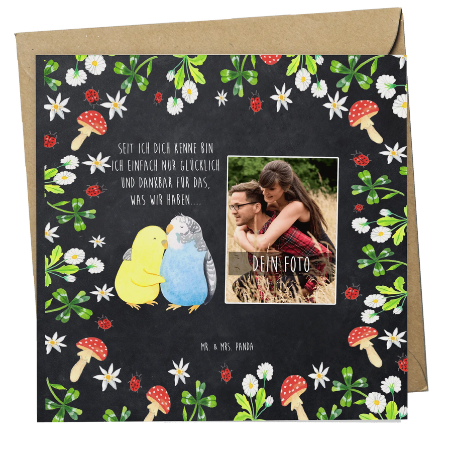 Personalized Photo Deluxe Card Parakeets in love – Mr. & Mrs. Panda
