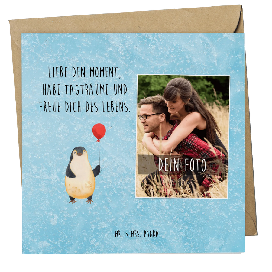 Personalized Photo Deluxe Card Penguin balloon - Ice blue