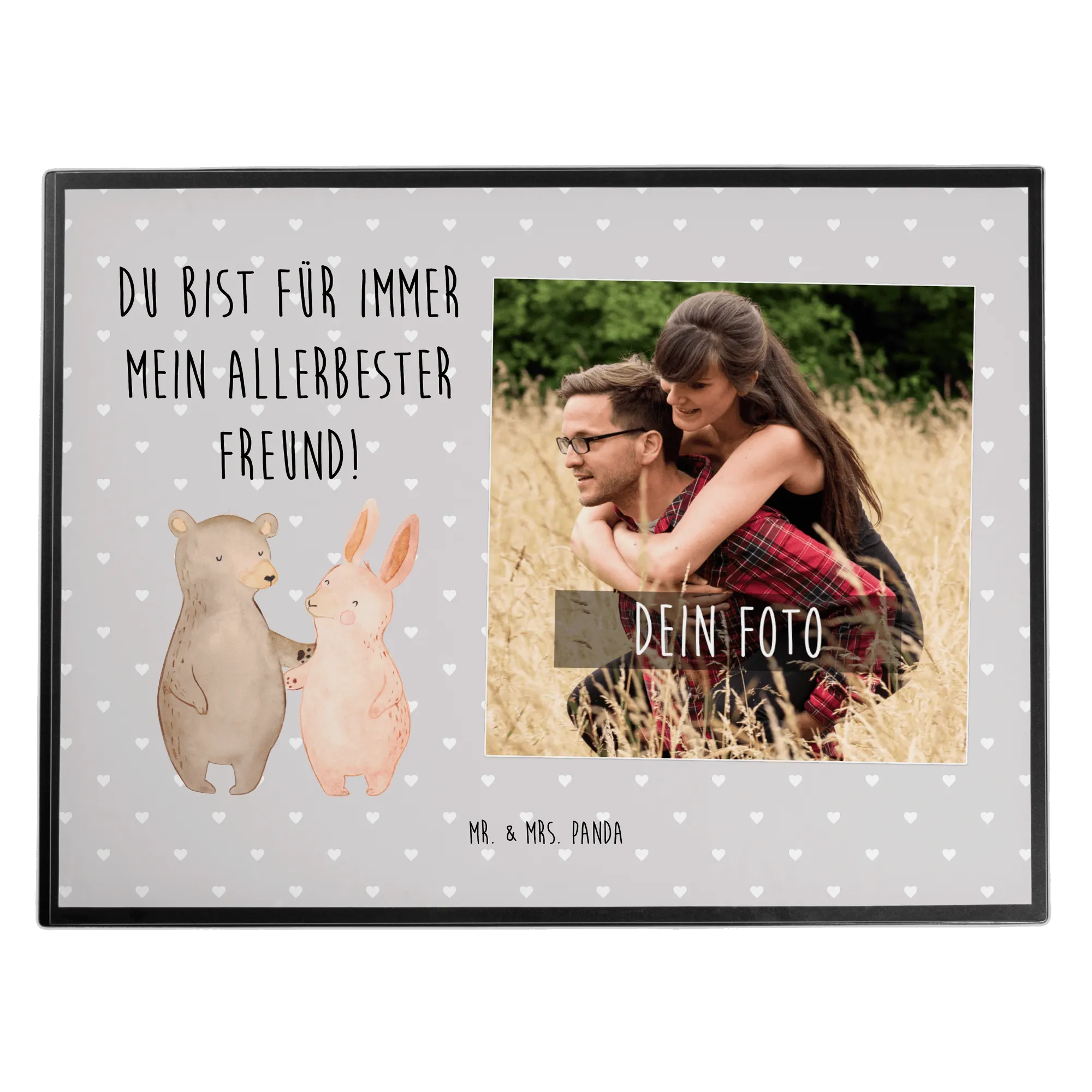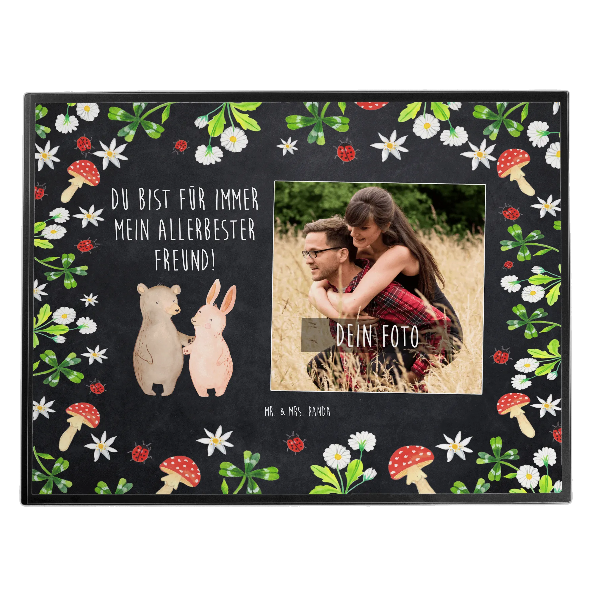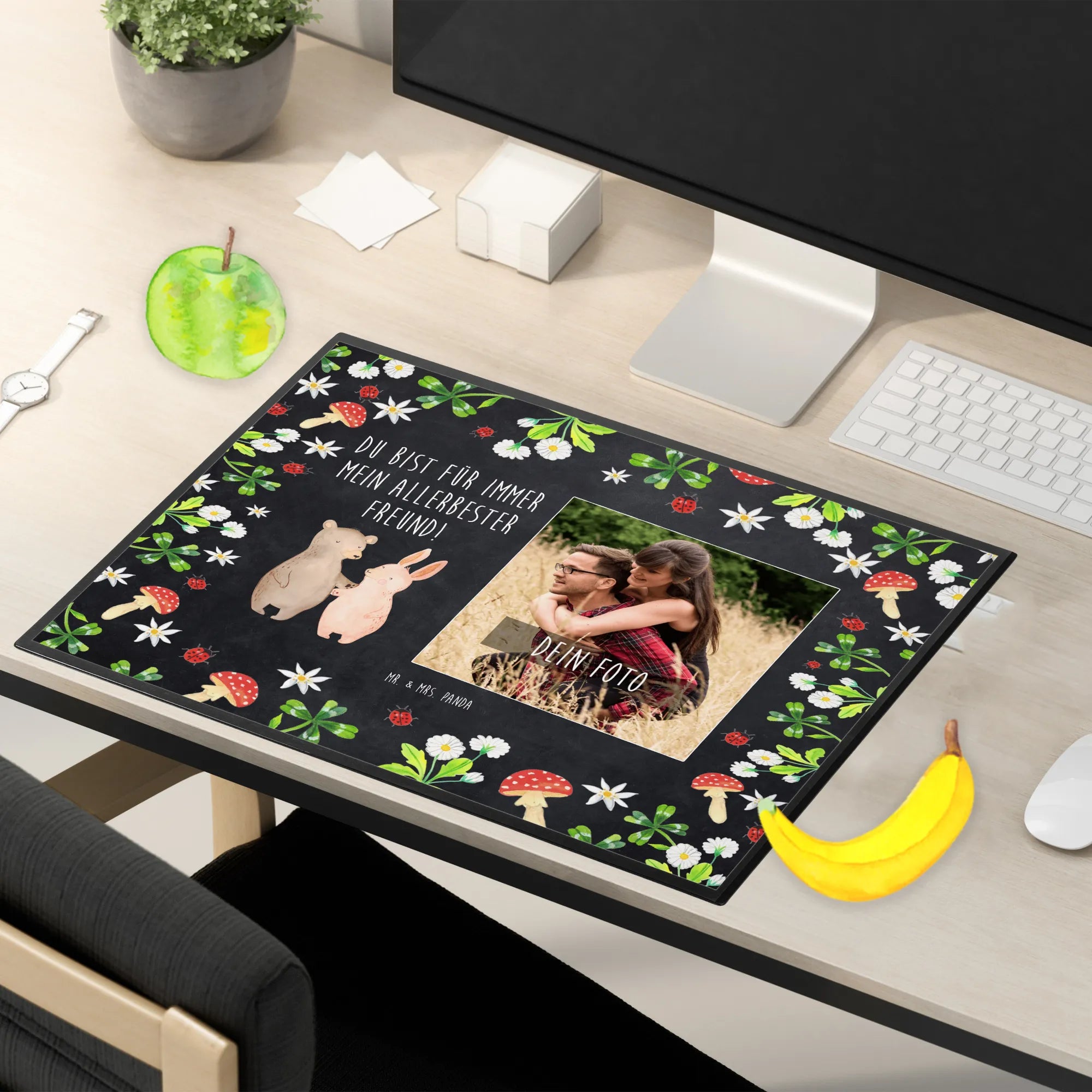 Personalized Photo Desk Mat bear and rabbit Embrace - Chalkboard