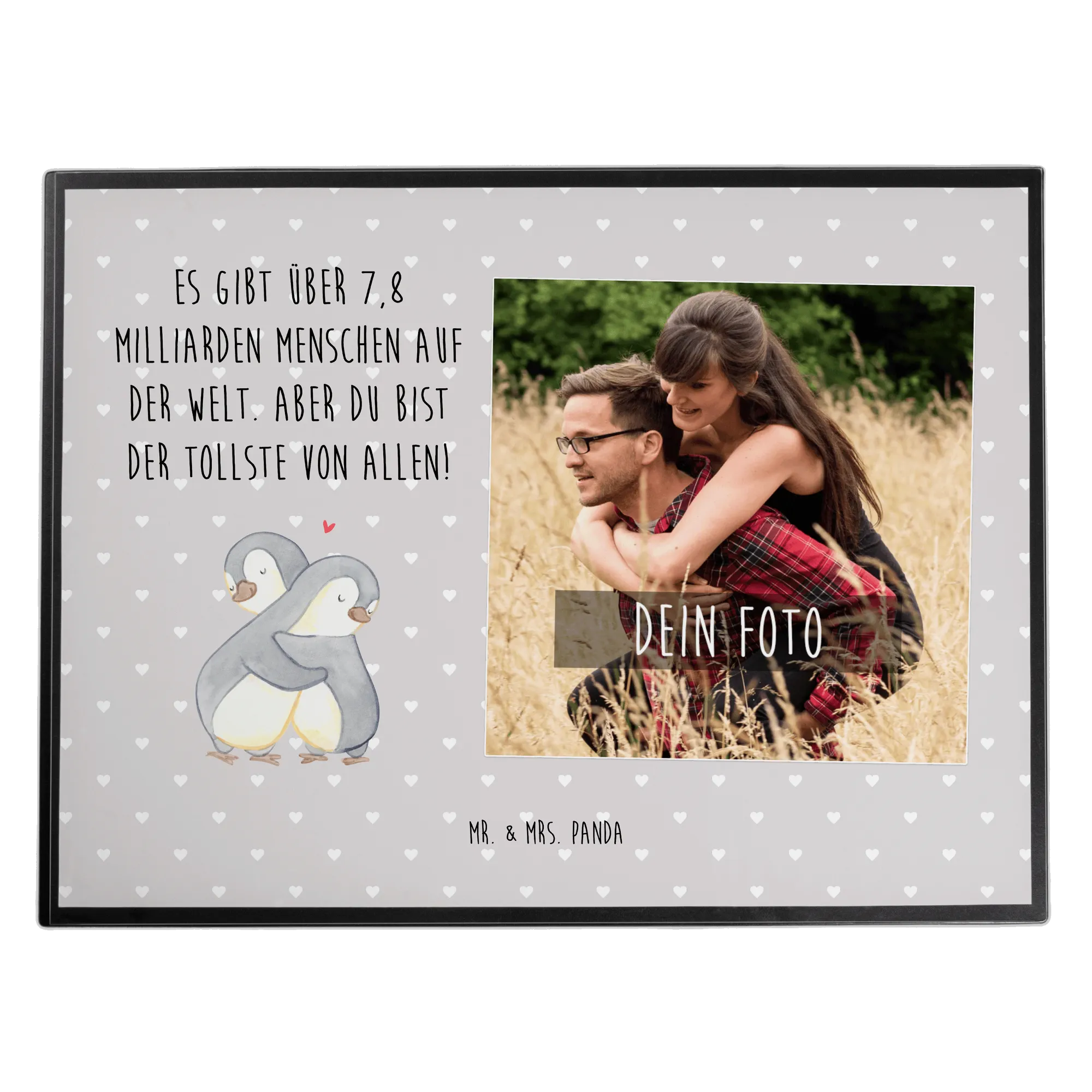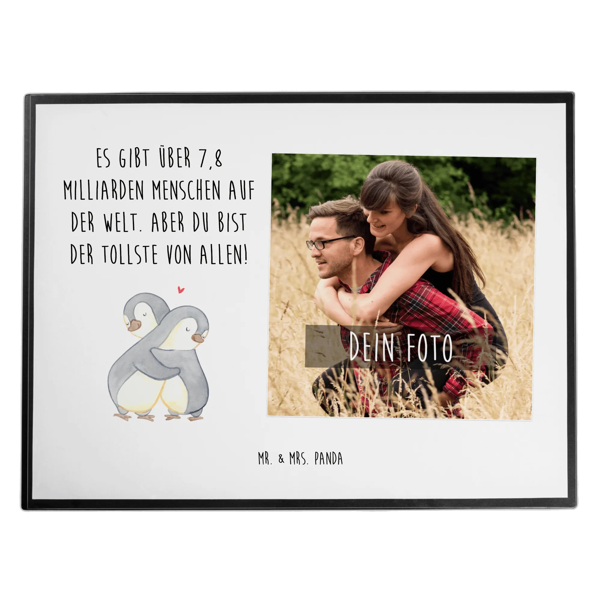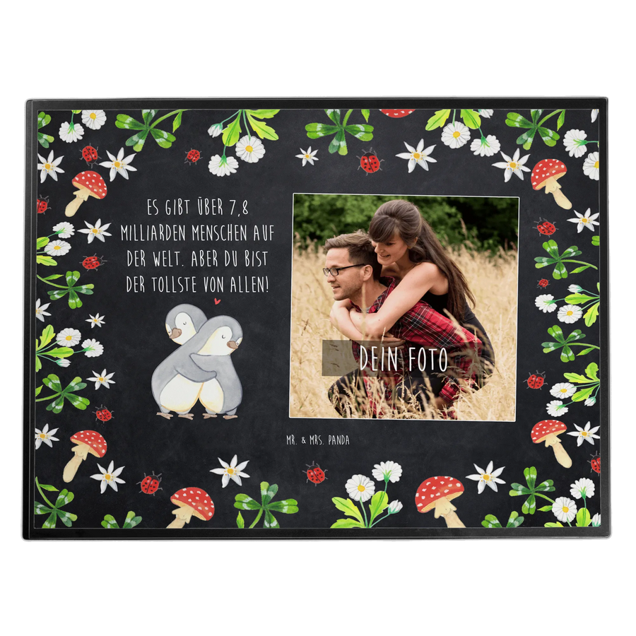 Personalized Photo Desk Mat penguins Cuddle - Chalkboard