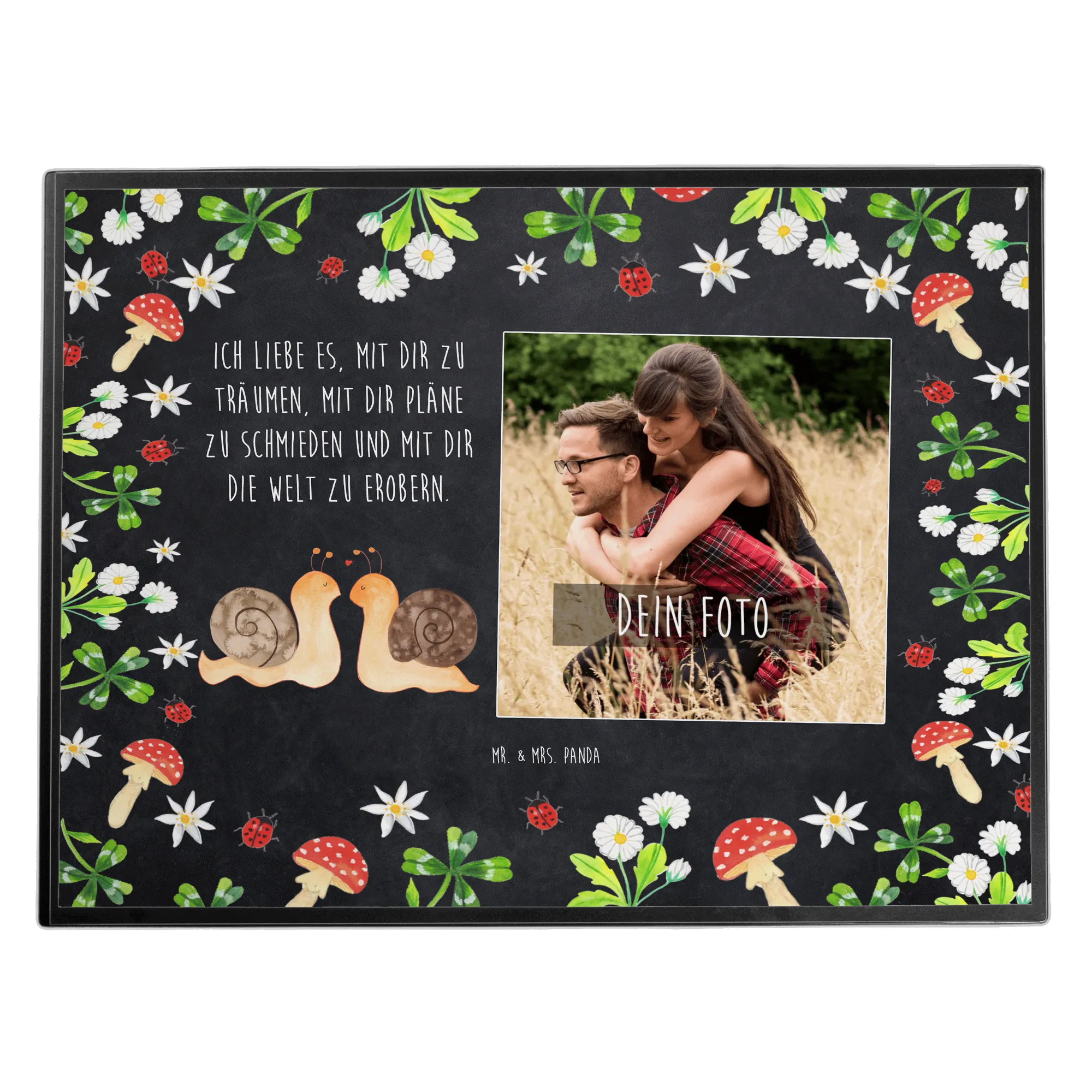 Personalized Photo Desk Mat Snails in love - Chalkboard