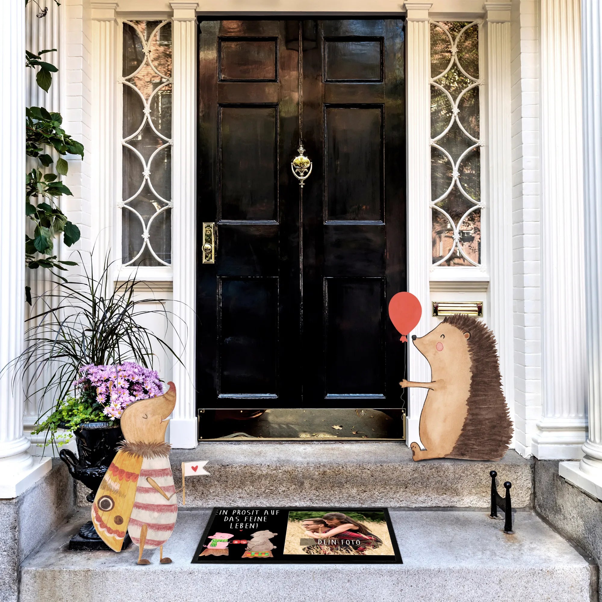 Personalized Photo Doormat Glowing Pig Bash - 60 x 90 cm