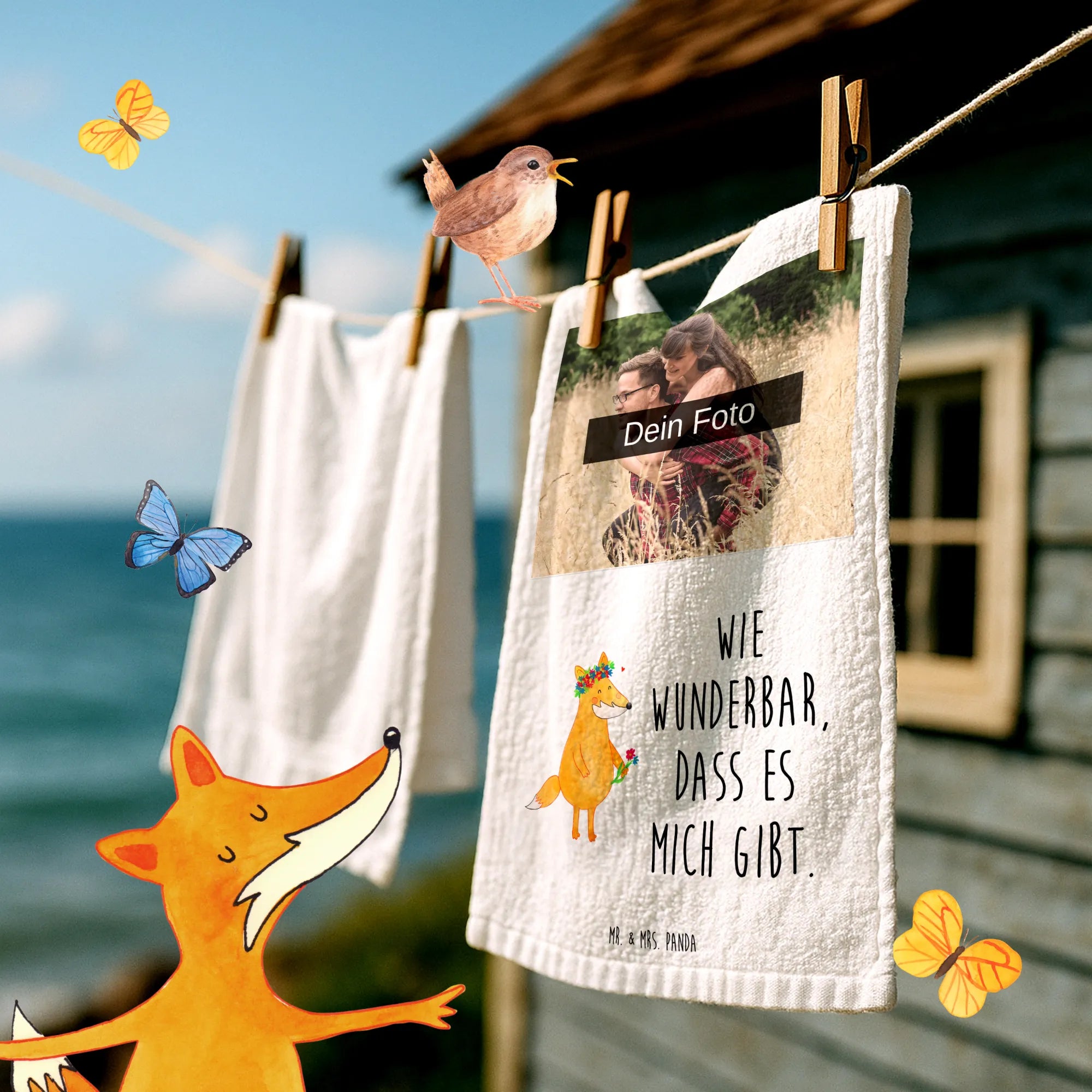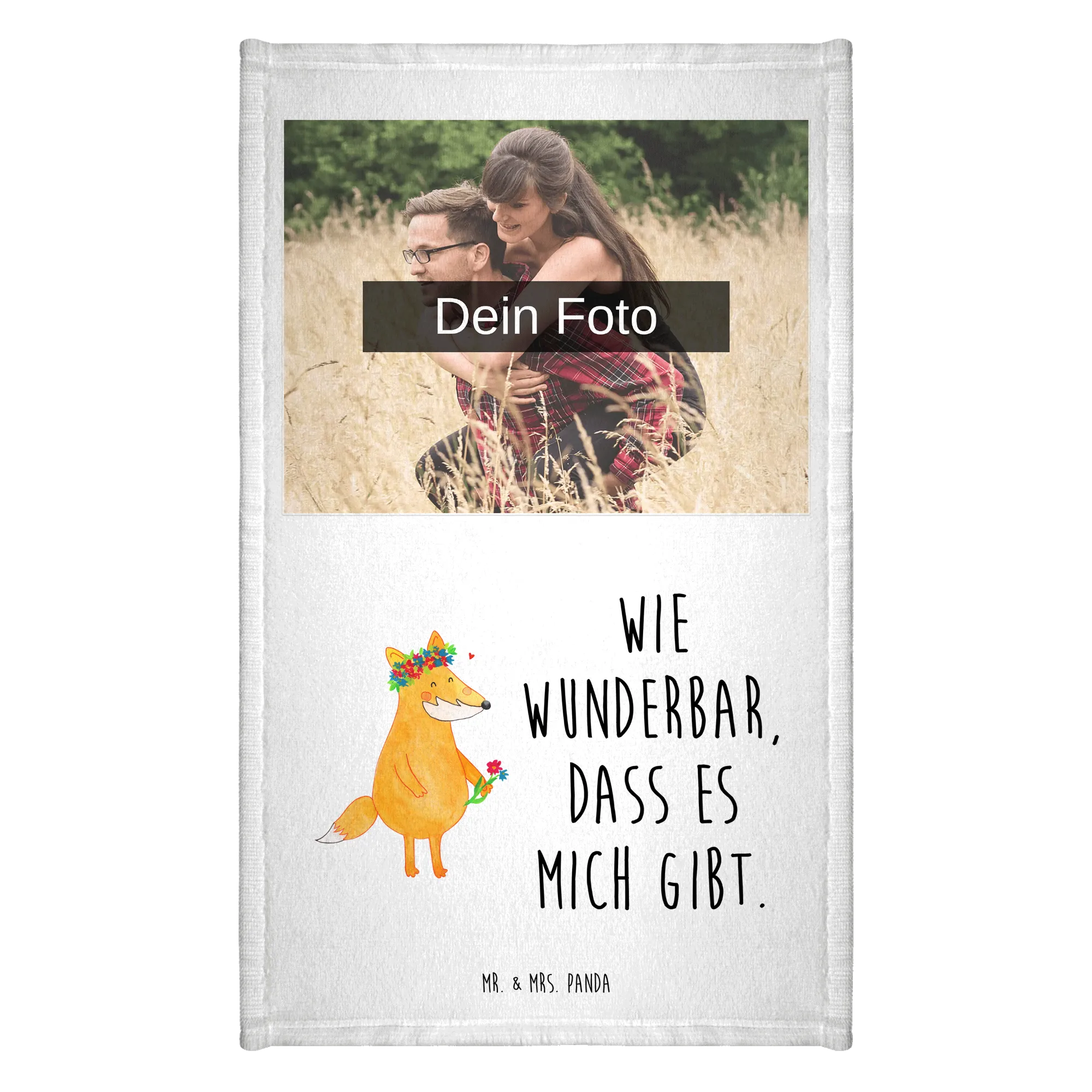 Personalisiertes Foto Gästehandtuch Fuchs Blumen – Mr. & Mrs. Panda