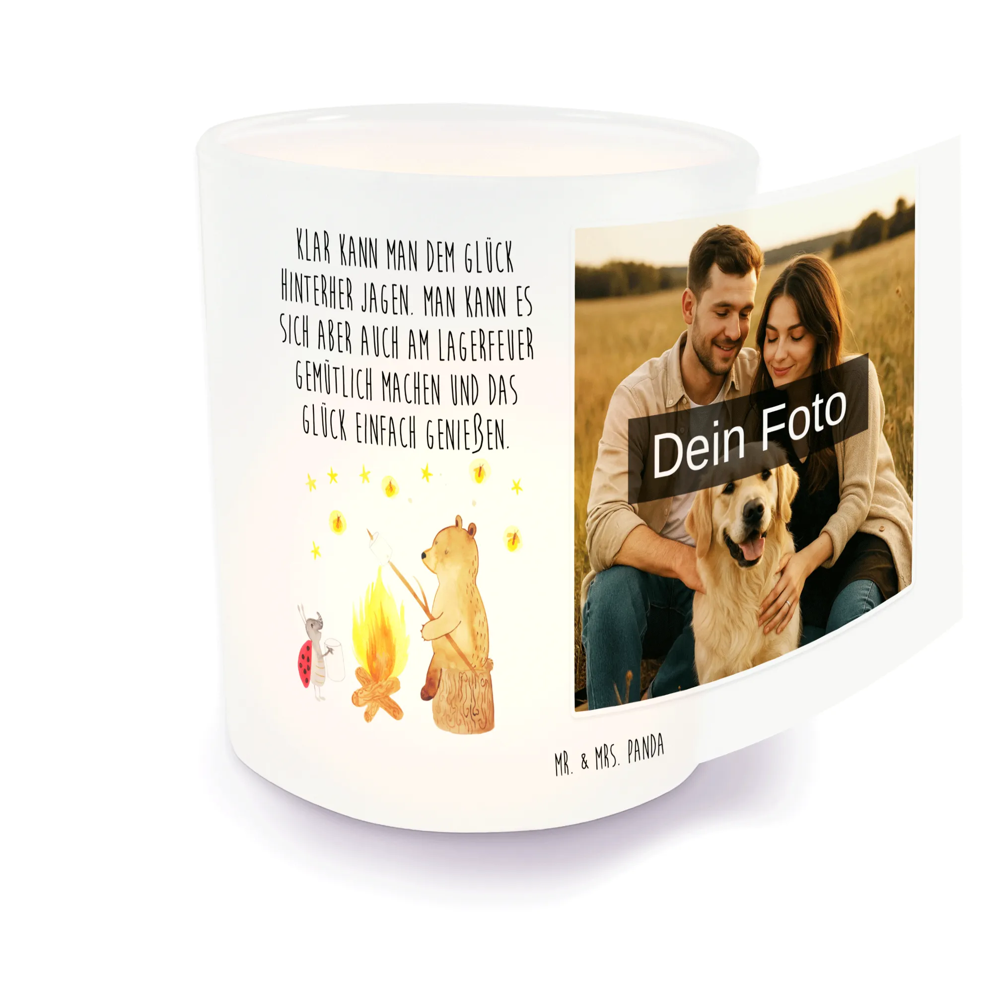 Personalisiertes Foto Windlicht Bär & Marienkäfer Lagerfeuer