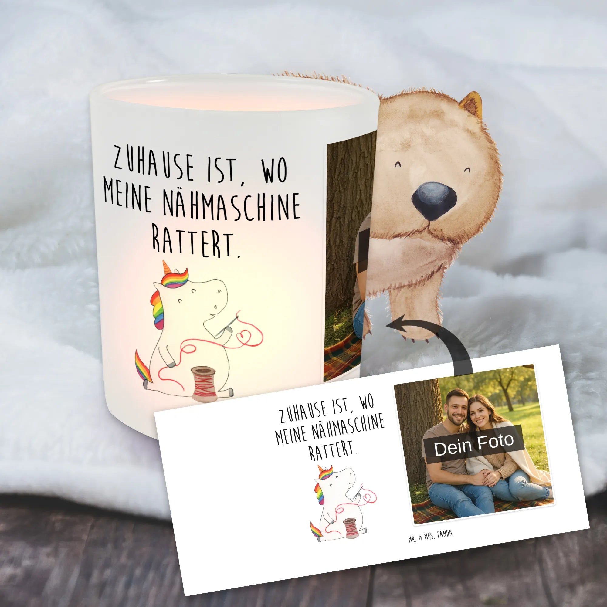 Personalisiertes Foto Windlicht Einhorn Näherin