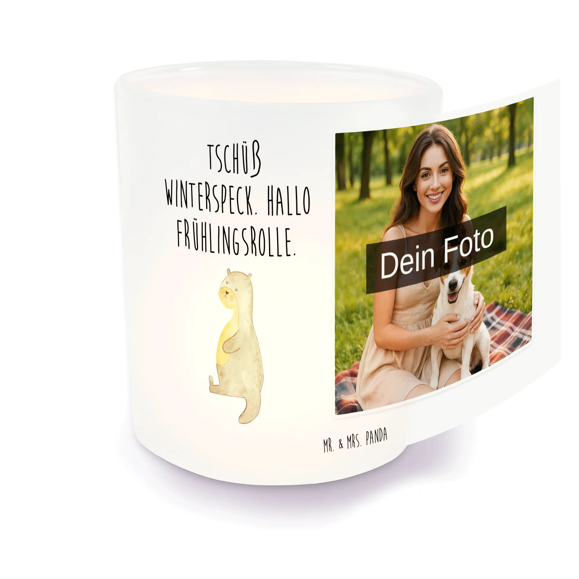 Mitten in der Natur, bei sanftem Wellenplätschern, sitzt ein zufriedener Otter und blickt mit einem Lächeln, das von einem Ohr zum anderen reicht. Sein Bauch, rund und voll von der Freude des Lebens, strahlt reine Zufriedenheit aus. 'Tschüß Winterspeck. Hallo Frühlingsrolle' - dieser Motiv Slogan ist eine charmante Erinnerung daran, dass Lebensfreude in allen Formen kommt und Selbstliebe der erste Schritt zu einem glücklichen Leben ist.
