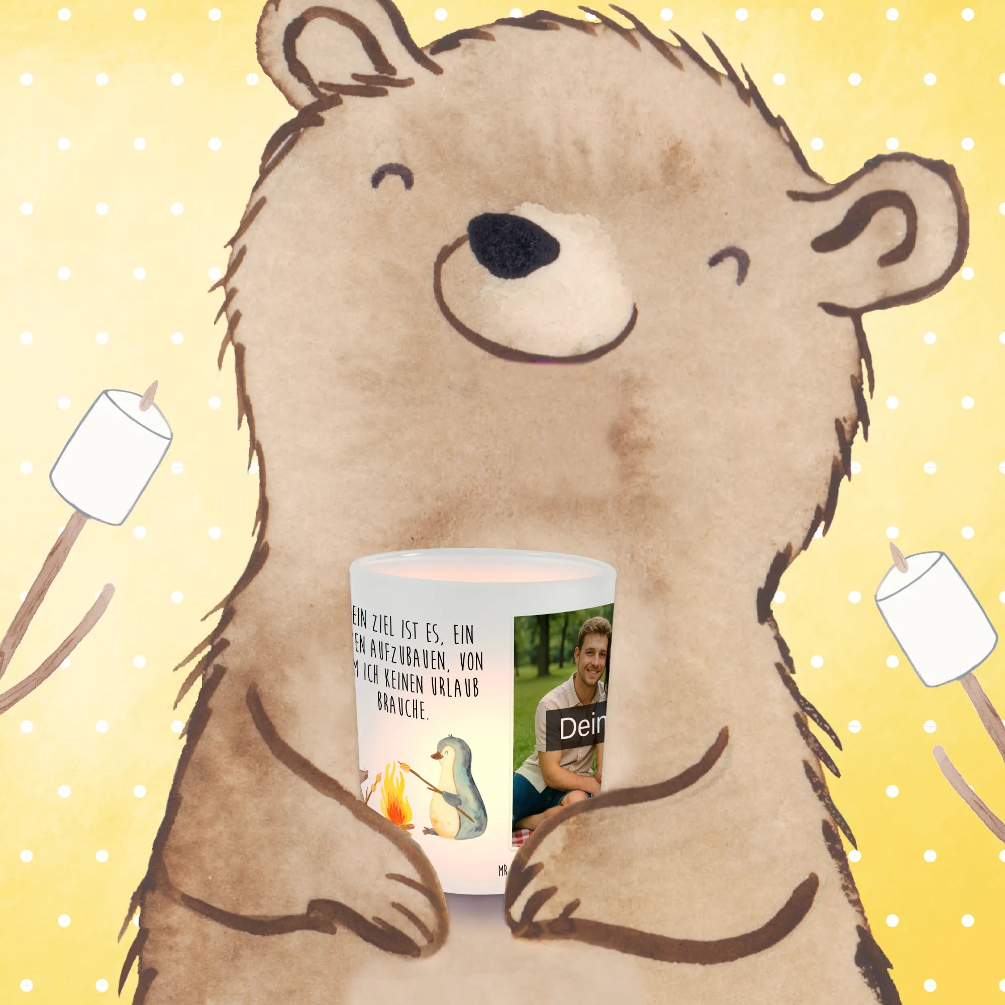 Personalisiertes Foto Windlicht Pinguin Lagerfeuer