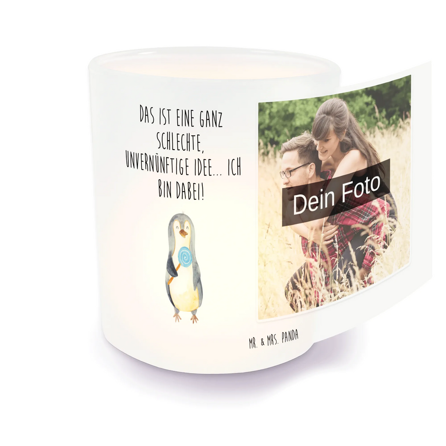 Personalisiertes Foto Windlicht Pinguin Lolli