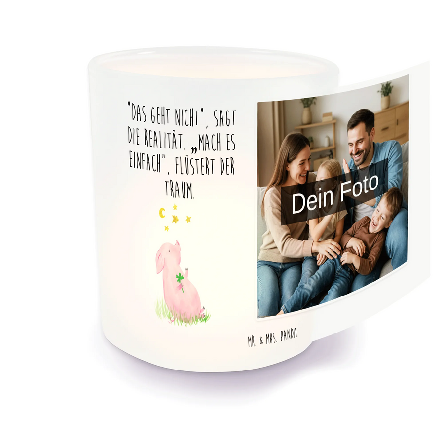 Gemütlichkeit und Stil vereint – das ist unser personalisiertes Foto Windlicht von Mr. & Mrs. Panda! Dieses besondere Windlicht aus satiniertem Glas misst 70 mm x 80 mm und lässt sich mit deinem liebsten Foto personalisieren. Oh, denk daran, ein hochauflösendes Bild zu wählen, um sicherzustellen, dass alle Details gut aussehen. Überprüfe, wie das Bild ausgeschnitten ist, denn es wäre schade, wenn wichtige Teile abgeschnitten werden. Es eignet sich hervorragend für Teelichter und schützt sie vor dem Wind, sodass du überall eine romantische Atmosphäre schaffen kannst. Pflege es am besten mit sanfter Handwäsche, damit es dir lange Freude bereitet. Verwandle dein Zuhause in einen Ort voller Licht und Liebe!