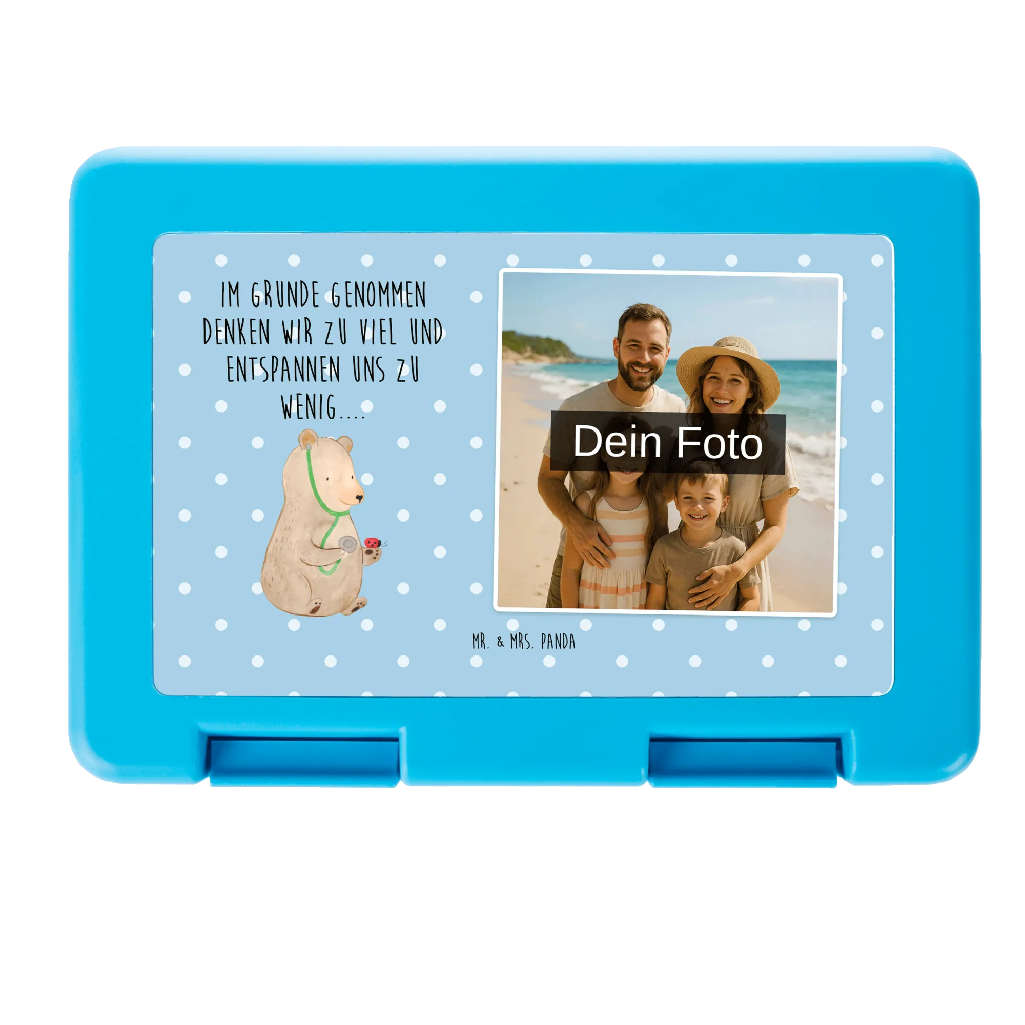 Die personalisierte Foto Brotdose von Mr. & Mrs. Panda ist ein Highlight für jeden Snack-Liebhaber! Mit 185 mm x 128 mm x 65 mm bietet sie ausreichend Platz für dein Mittagessen oder die Vesper für die Schule. Hergestellt aus strapazierfähigem Kunststoff, bleibt alles frisch und lecker! Du kannst die Brotbüchse mit einem persönlichen Foto gestalten und ihr so deinen ganz eigenen Stil verleihen – bitte achte darauf, dass das hochgeladene Bild eine hohe Auflösung hat! Zusätzliche Merkmale wie der sichere Doppelverschluss und Luftlöcher, die für eine optimale Zirkulation sorgen, machen diese Vesperdose besonders praktisch und einzigartig. Ideal für den Unterricht oder im Job – genieße jede Pause in voller Farbenpracht! Pflegehinweis: Handspülung empfohlen.