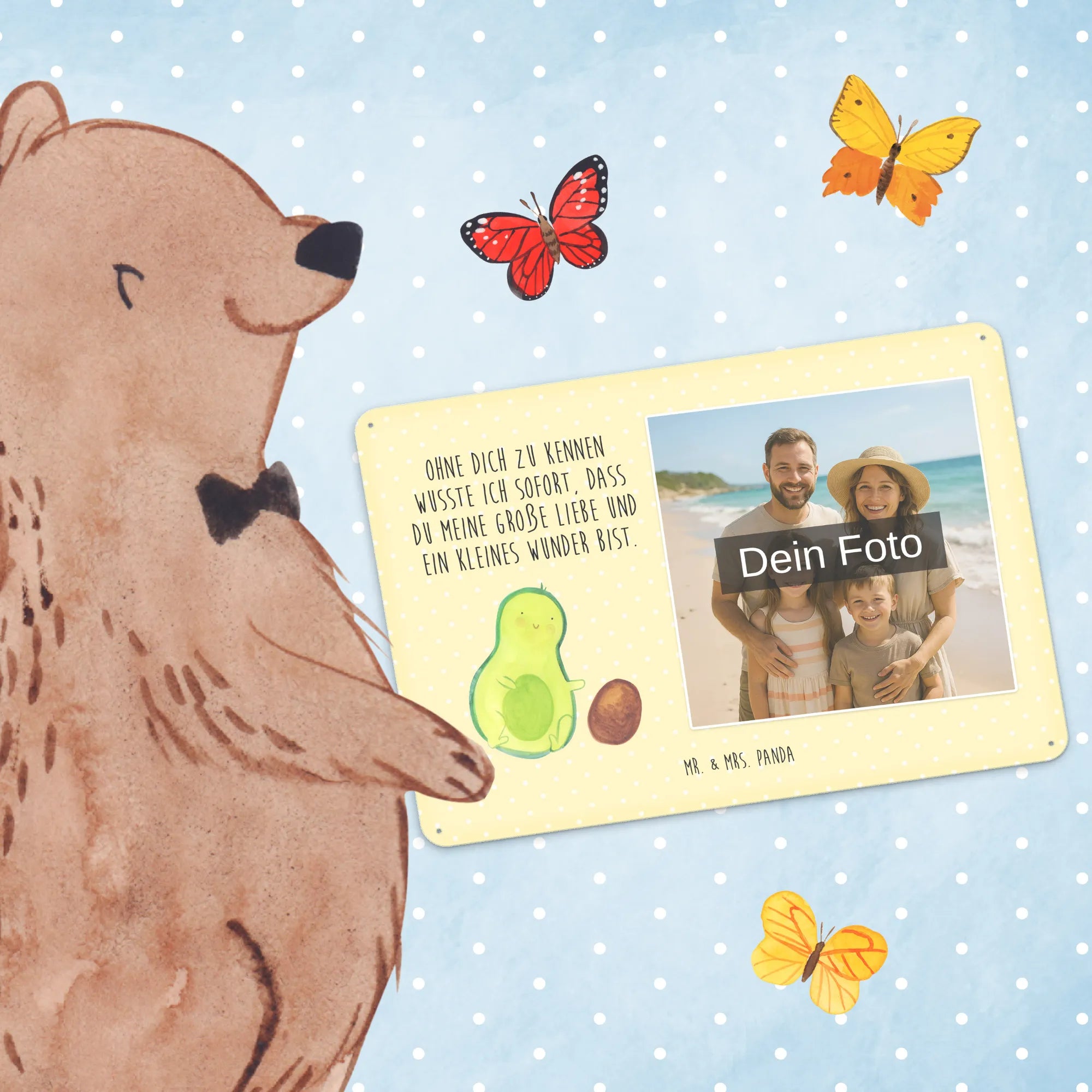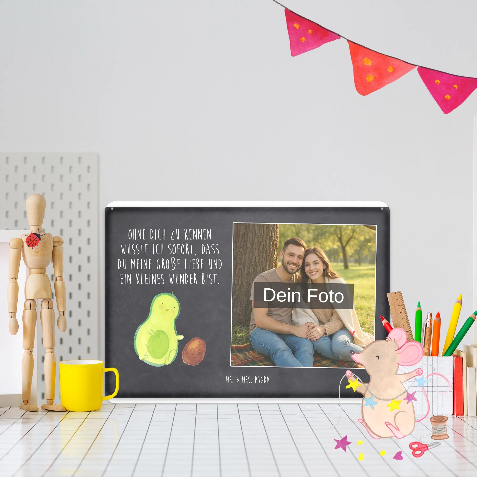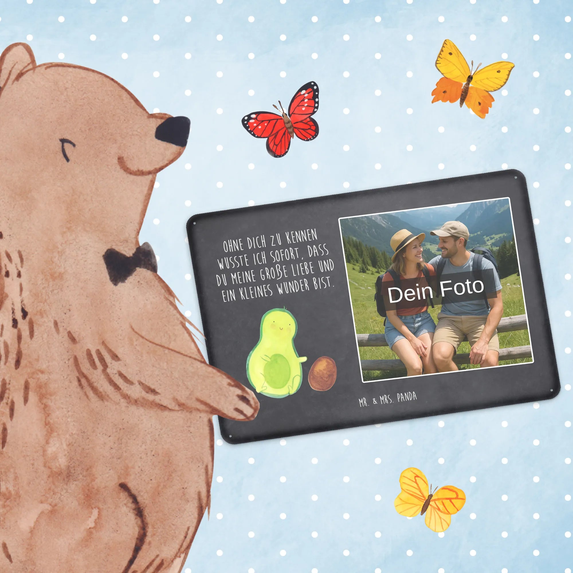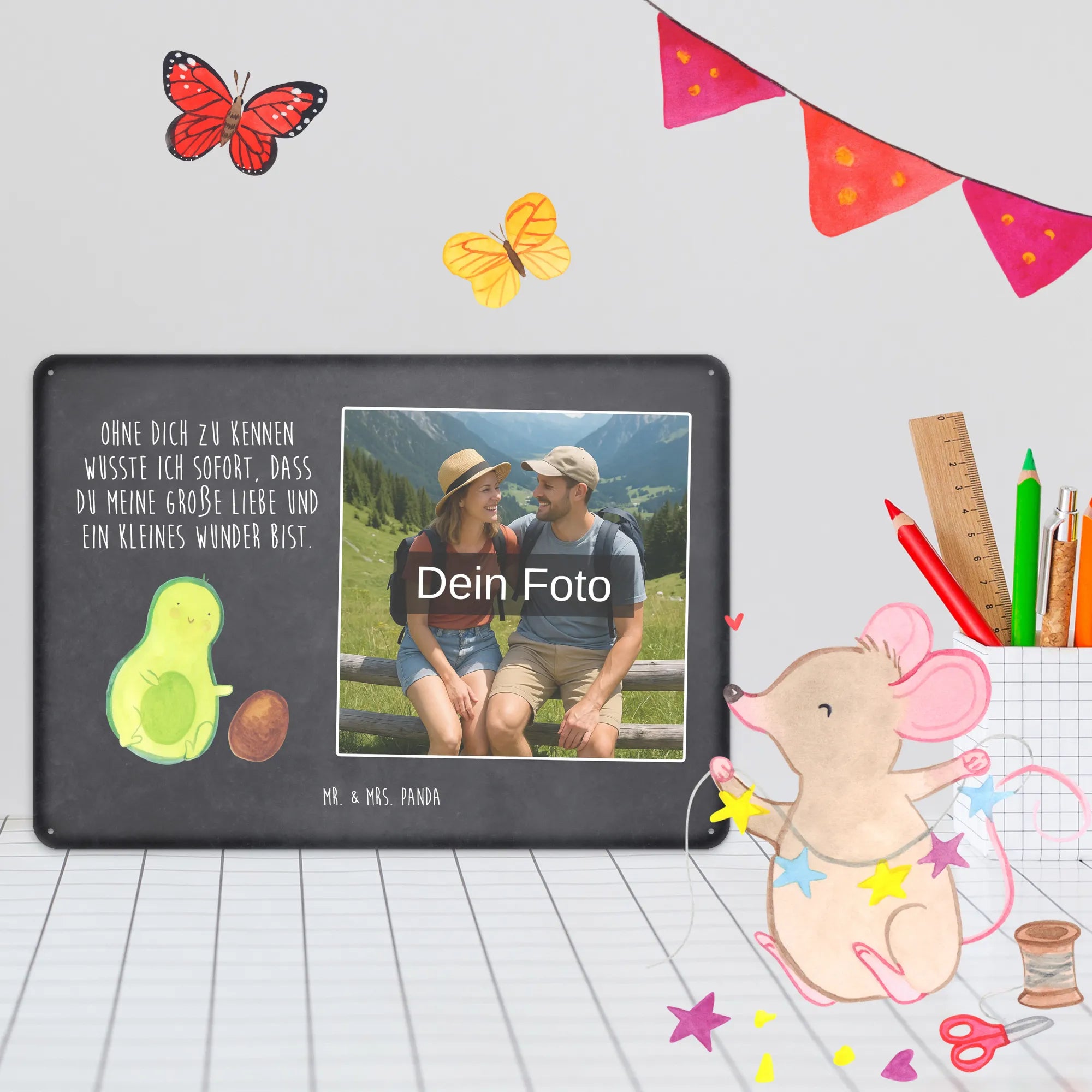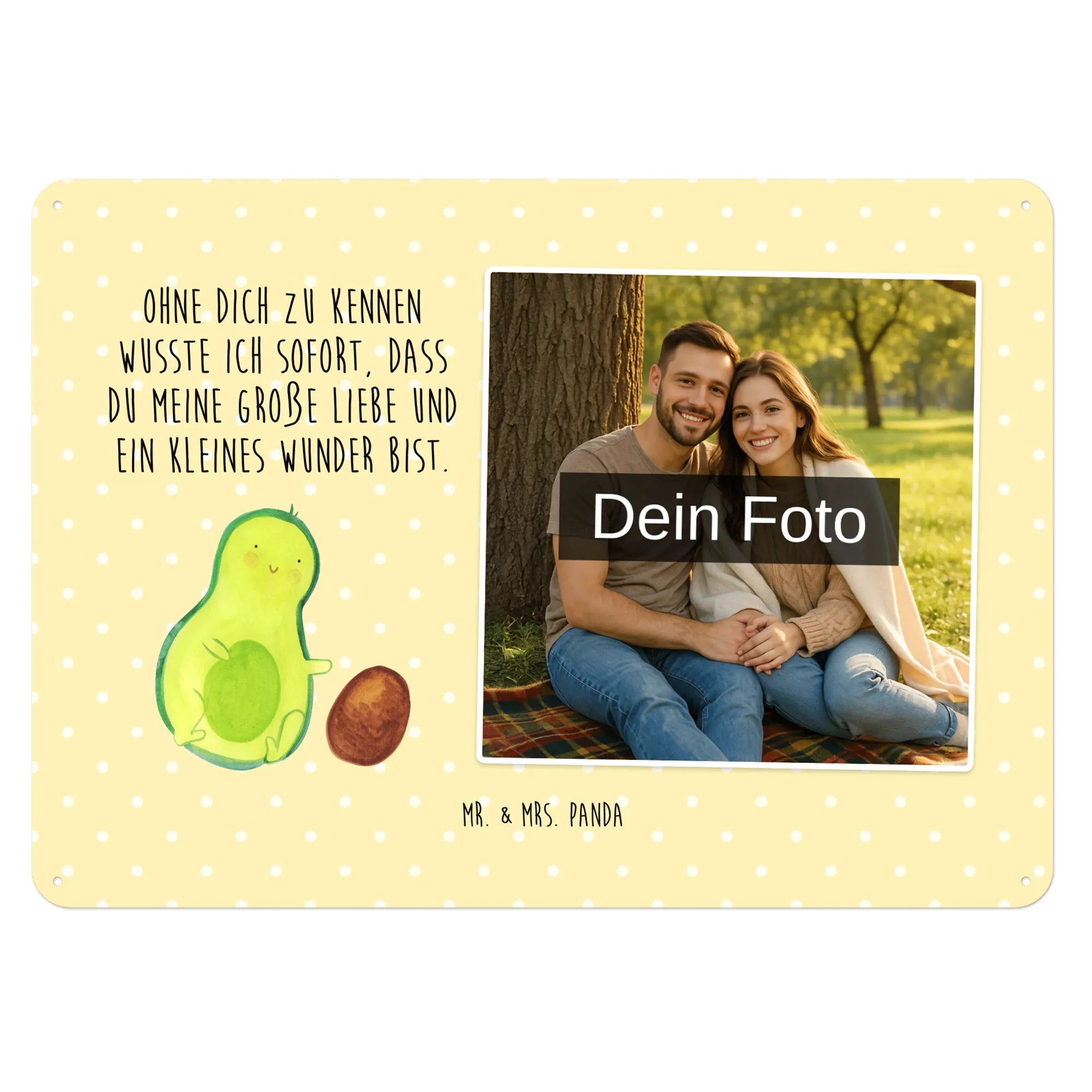 Mach es persönlich: Lade dein Foto hoch und gestalte jetzt dein Foto-Blechschild personalisiert mit Mr. & Mrs. Panda – schnell, einfach und liebevoll gestaltet.