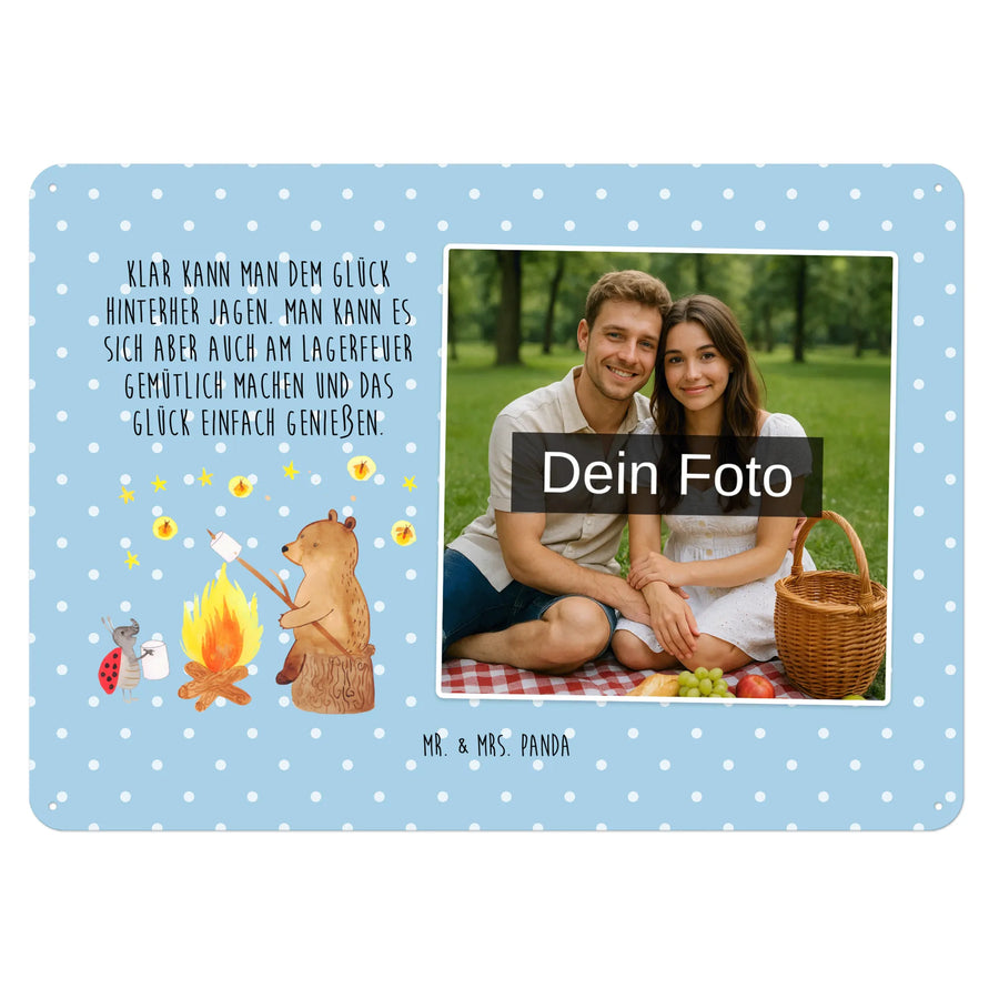 Personalized Photo Metal Sign Bear & Ladybird campfire - DIN A6