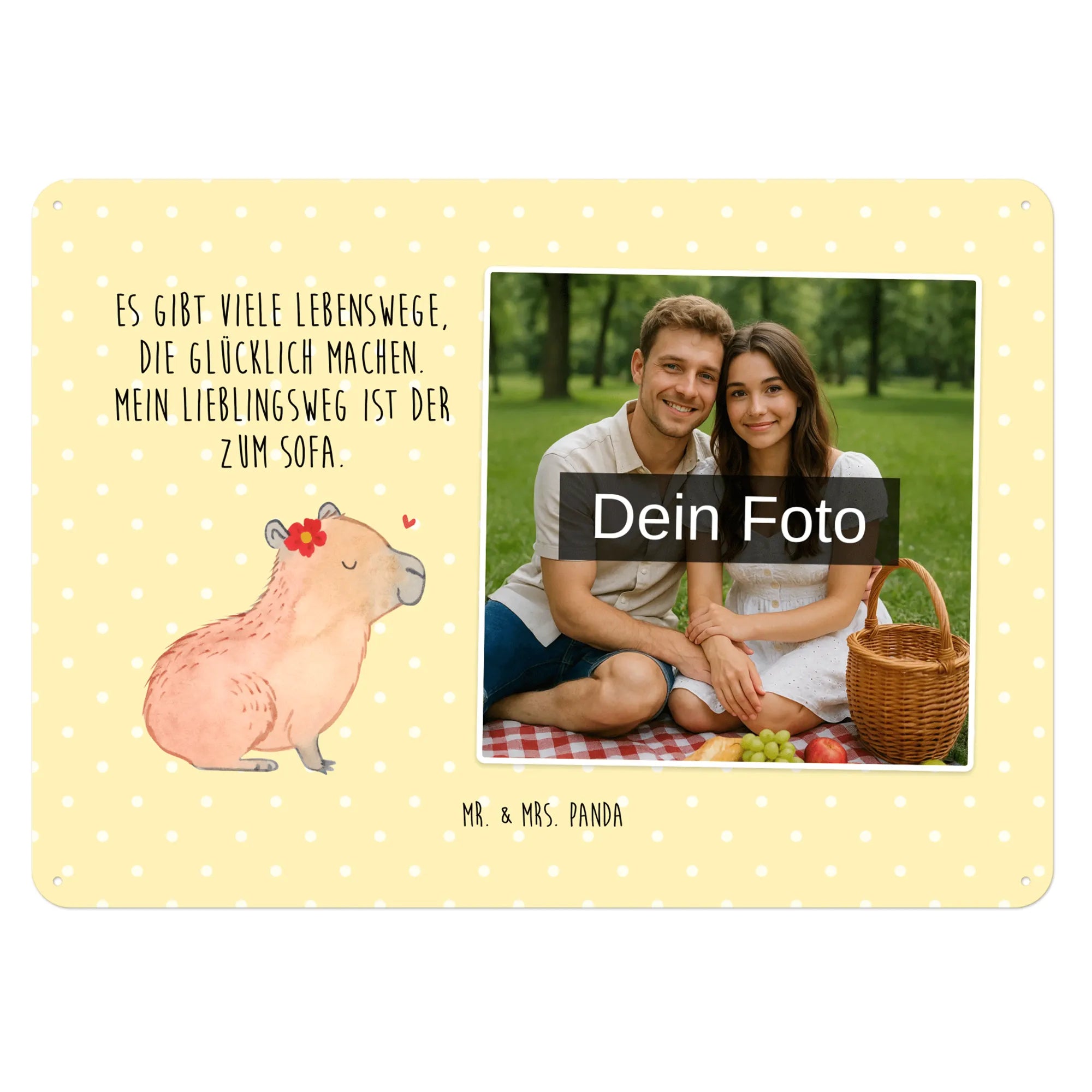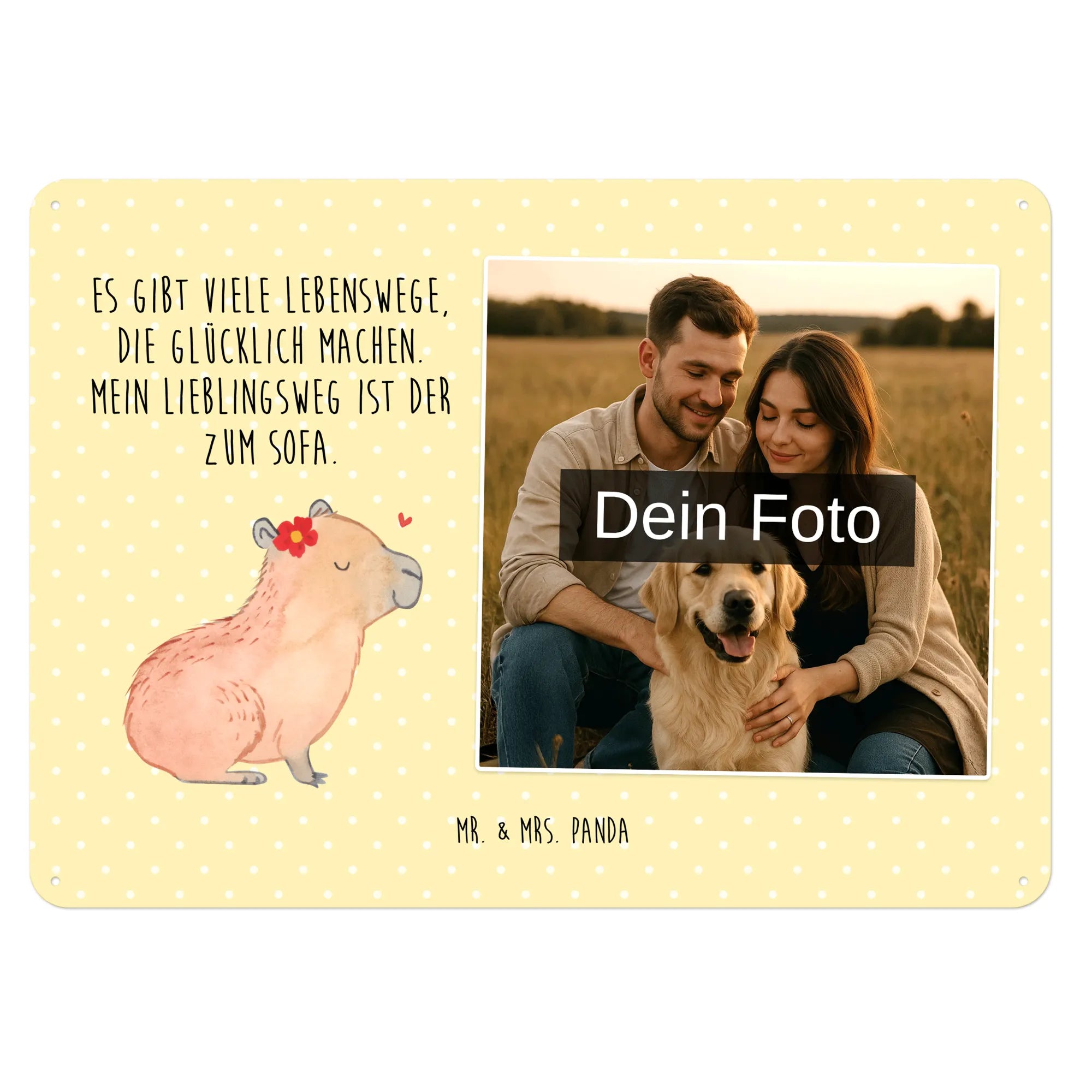 Mach es persönlich: Lade dein Foto hoch und gestalte jetzt dein Foto-Blechschild personalisiert mit Mr. & Mrs. Panda – schnell, einfach und liebevoll gestaltet.