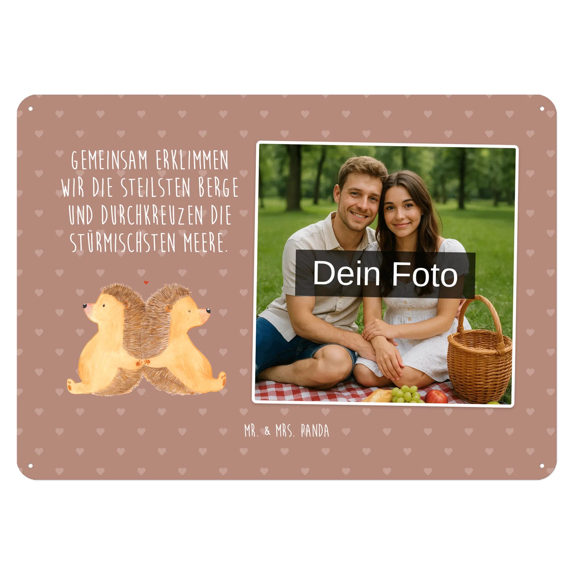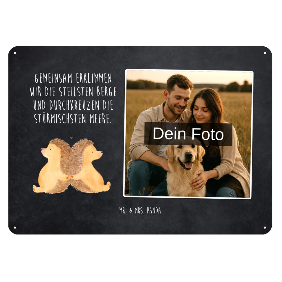 Personalized Photo Metal Sign Hedgehogs holding hands - DIN A6 - Chalkboard