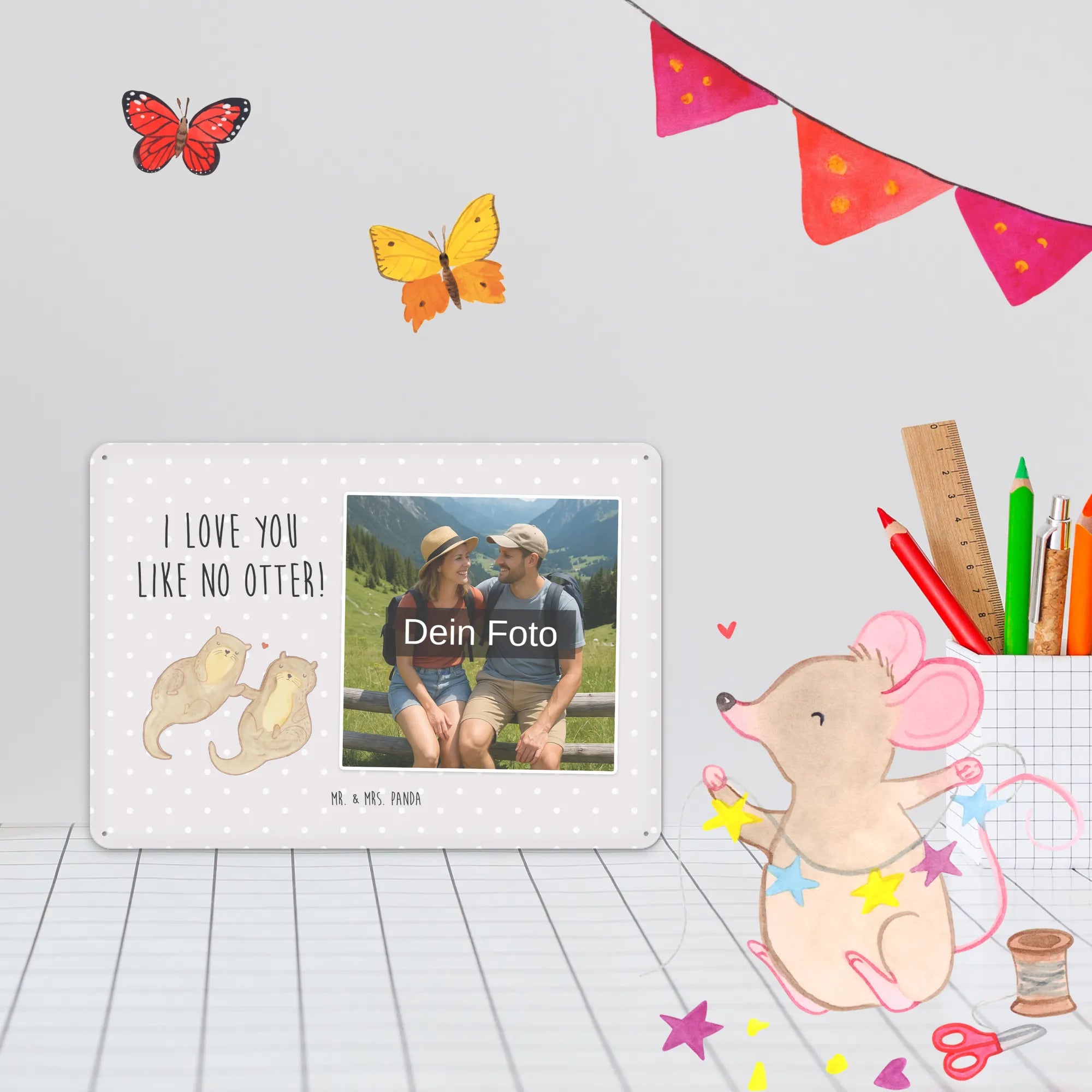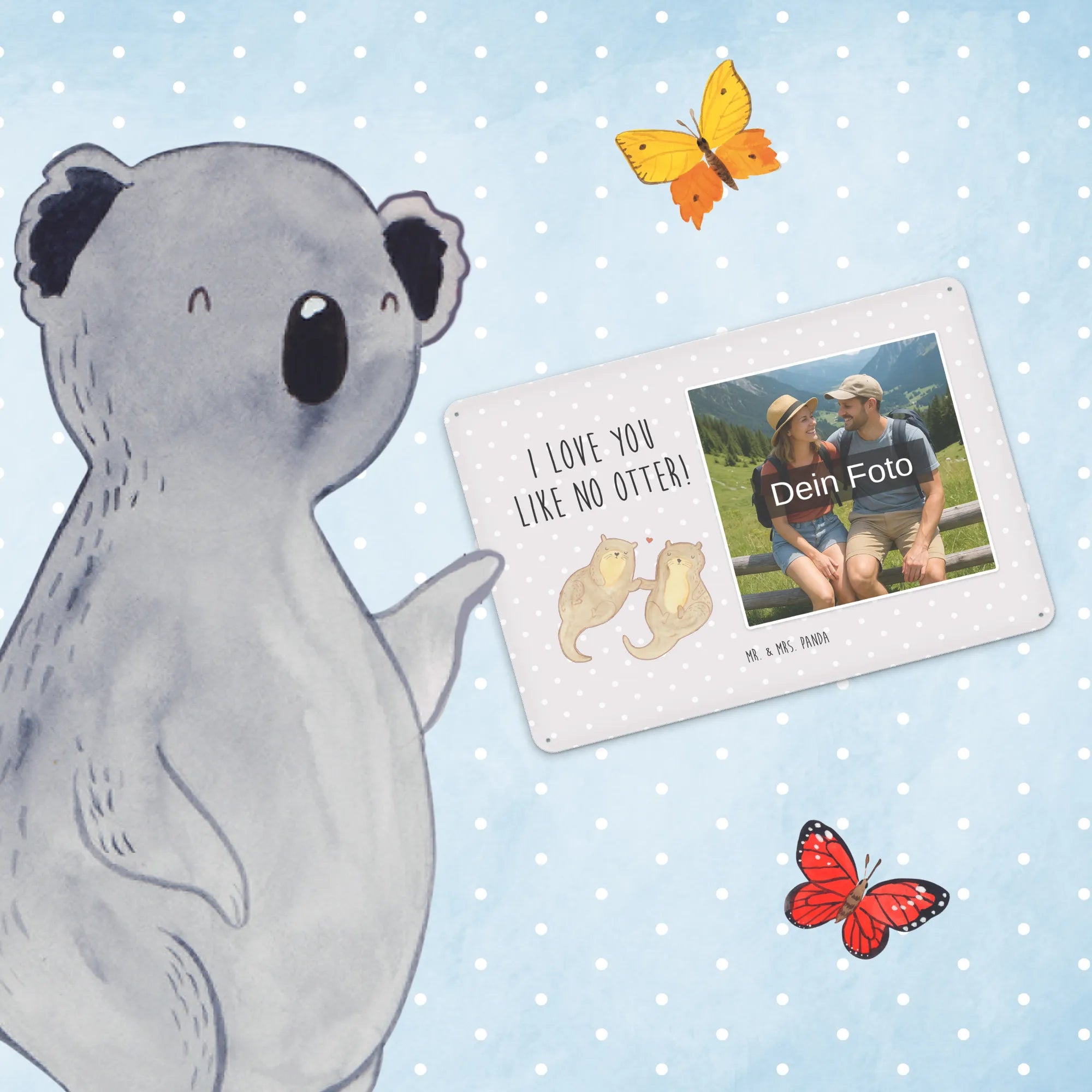 Personalized Photo Metal Sign otter holding hands - DIN A6