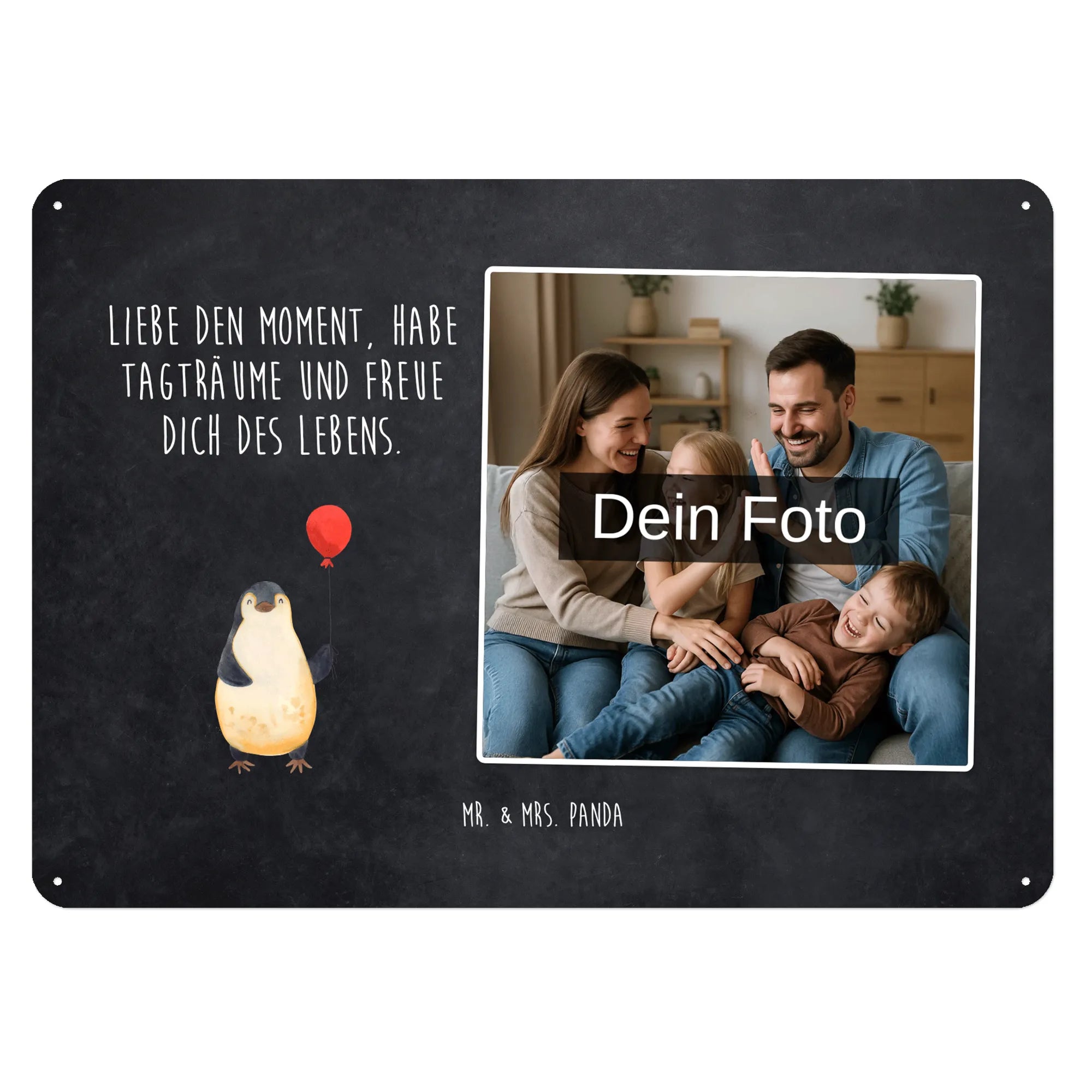 Personalized Photo Metal Sign Penguin balloon - DIN A6 - Kreidetafel