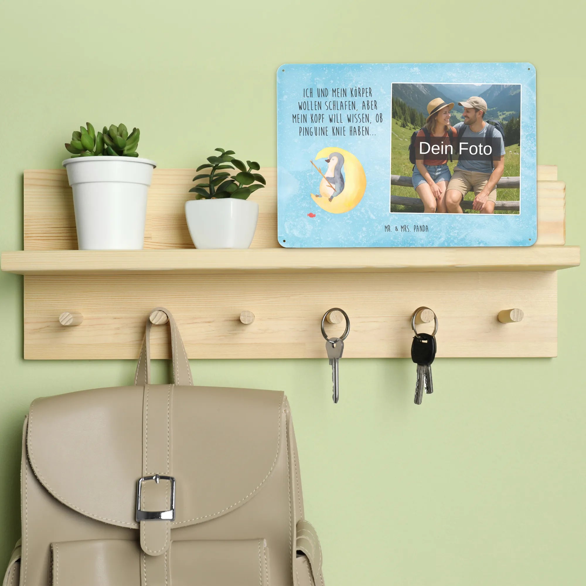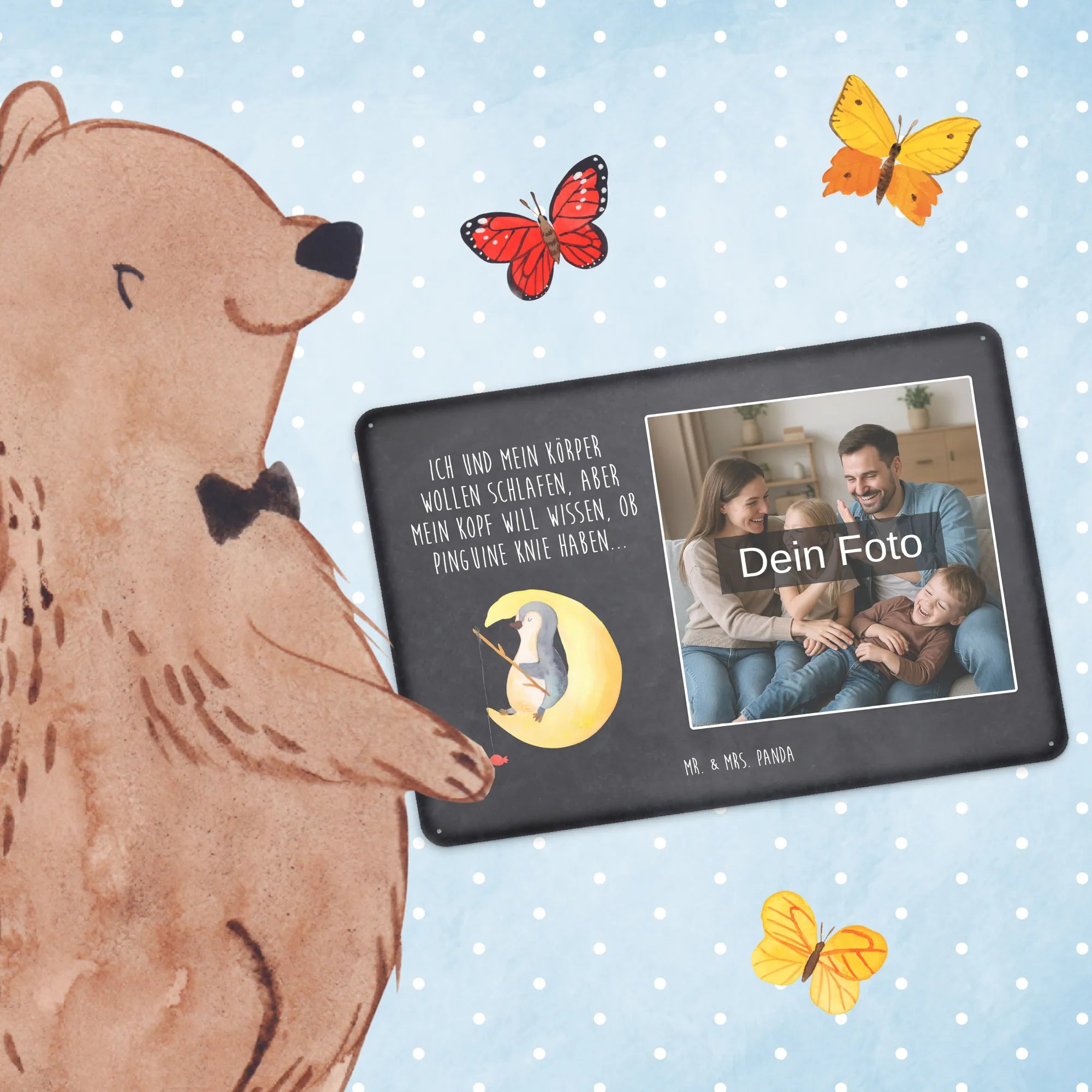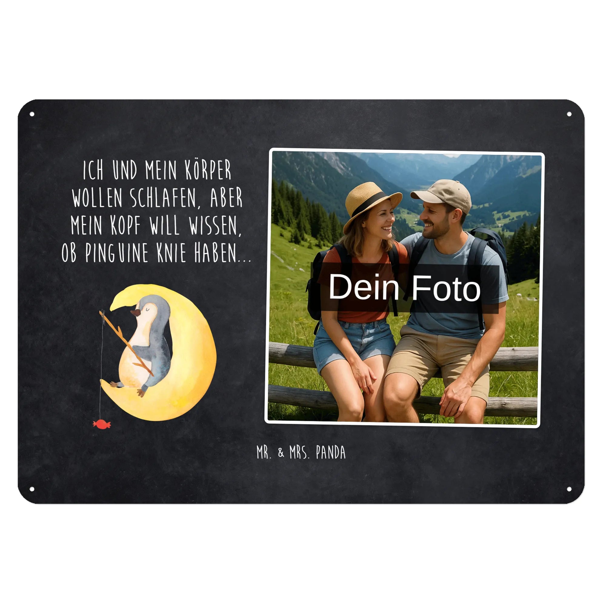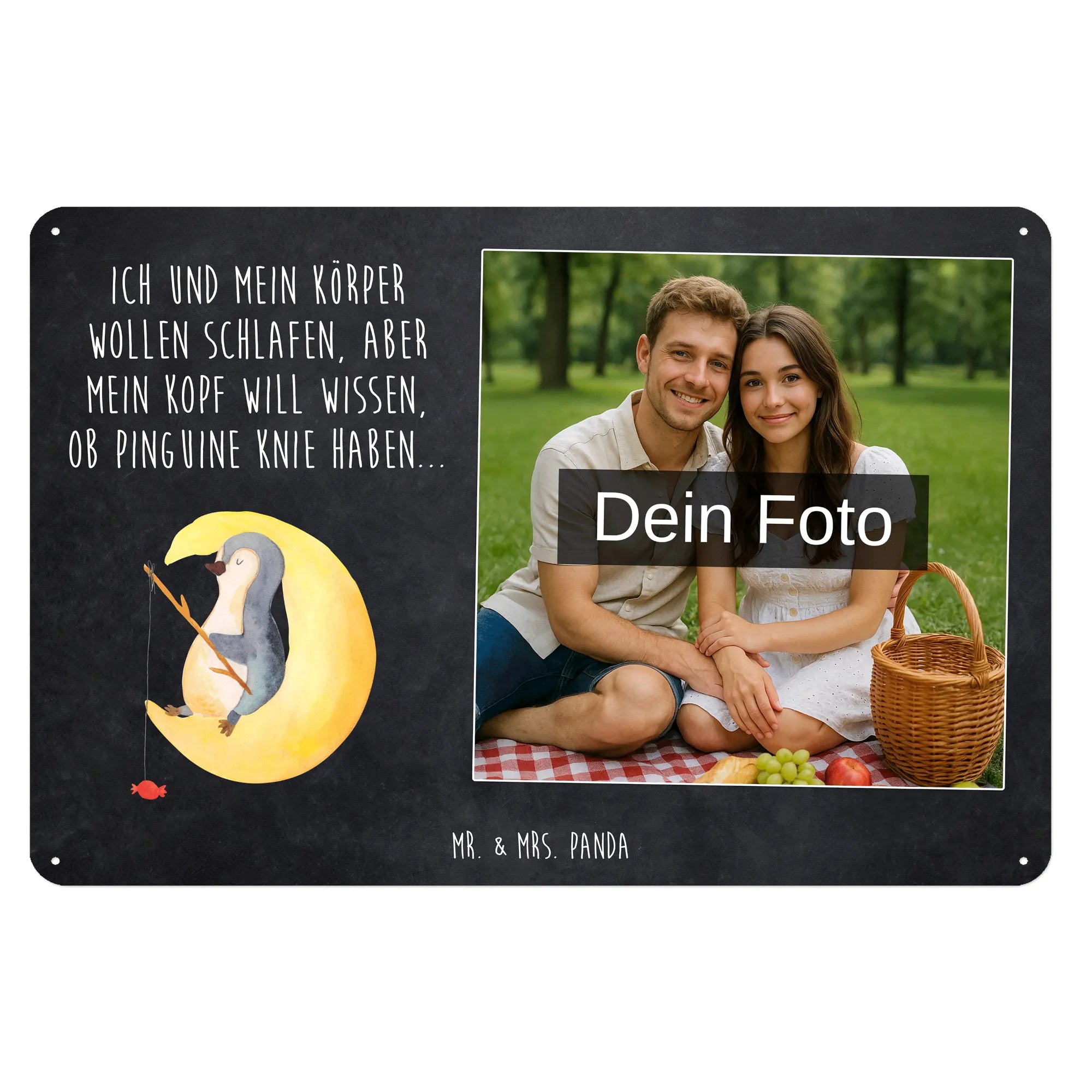 Personalized Photo Metal Sign Penguin moon - DIN A6 - Kreidetafel