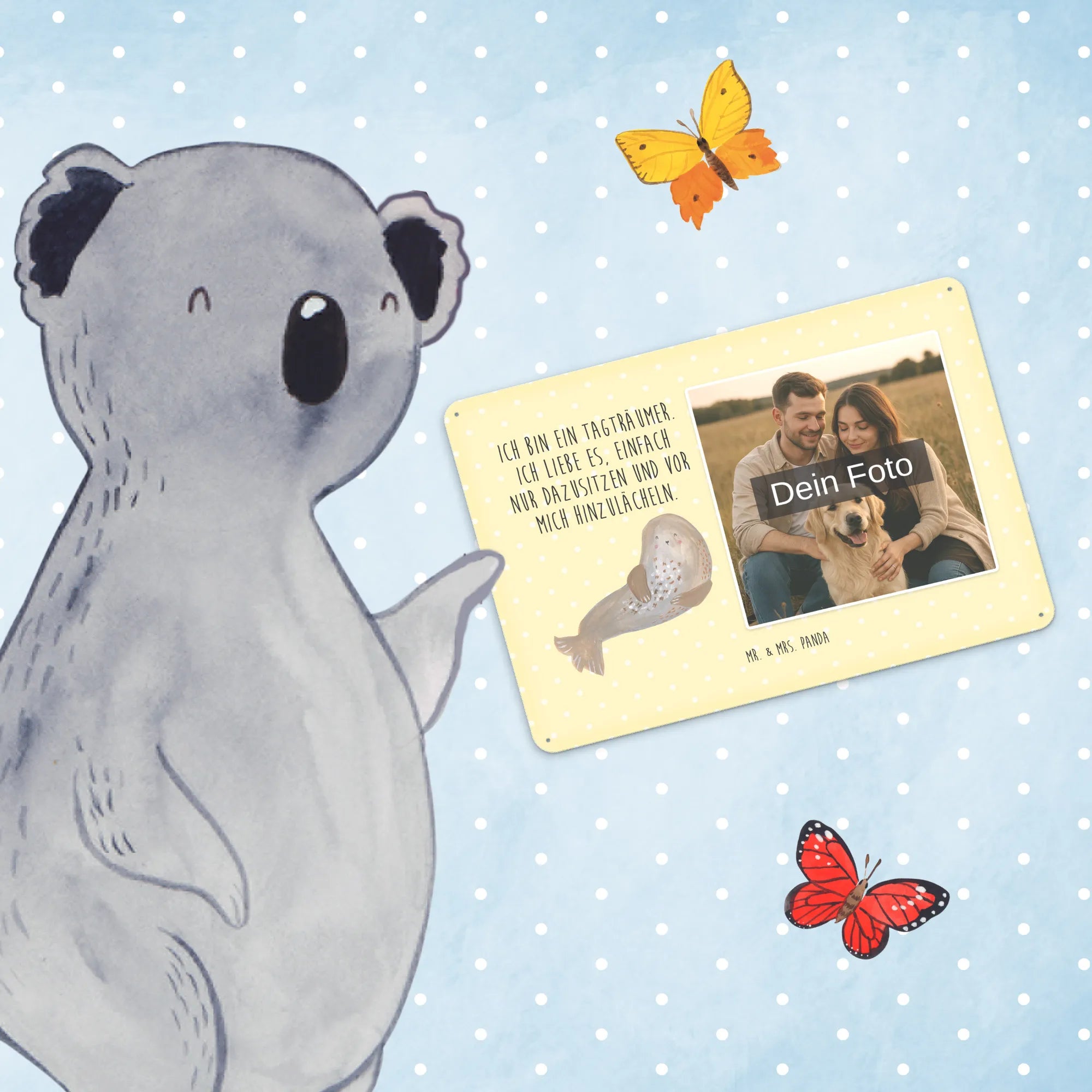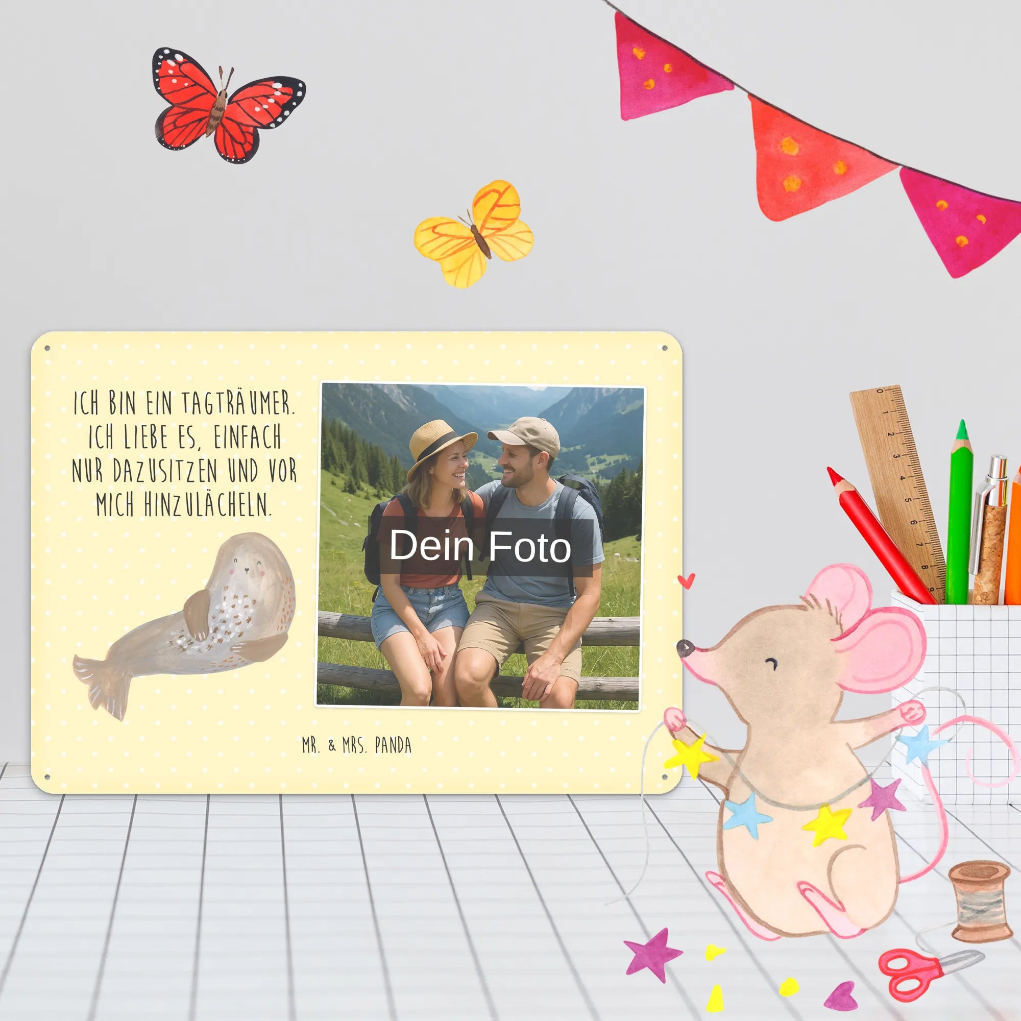 Personalized Photo Metal Sign seal Laugh small animals, cute, funny, cute animal motives, hand drawn, small world, funny sayings, good mood, happy, gifts, gift ideas, special gifts, animal lover, card, Beach, Baltic Sea, Sea animal, Seal, Seals, North Sea
