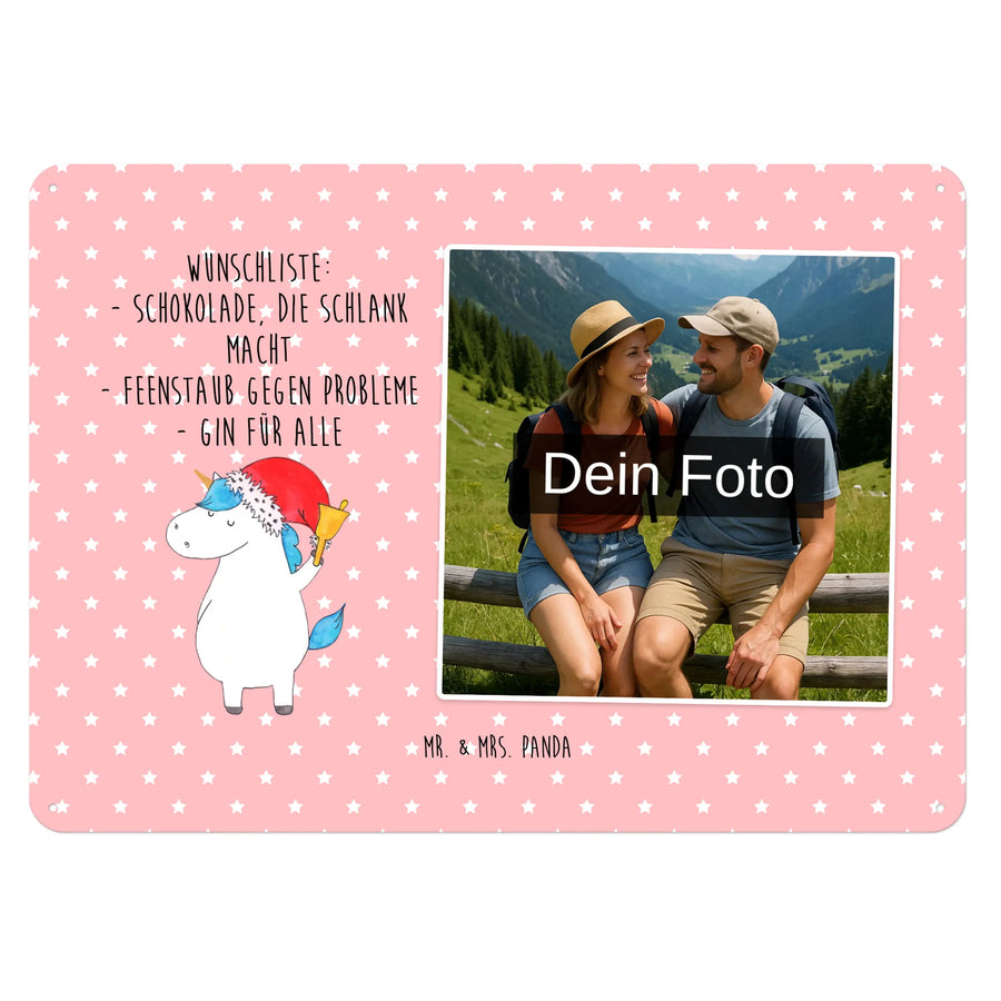 Personalized Photo Metal Sign unicorn Santa Claus - DIN A6