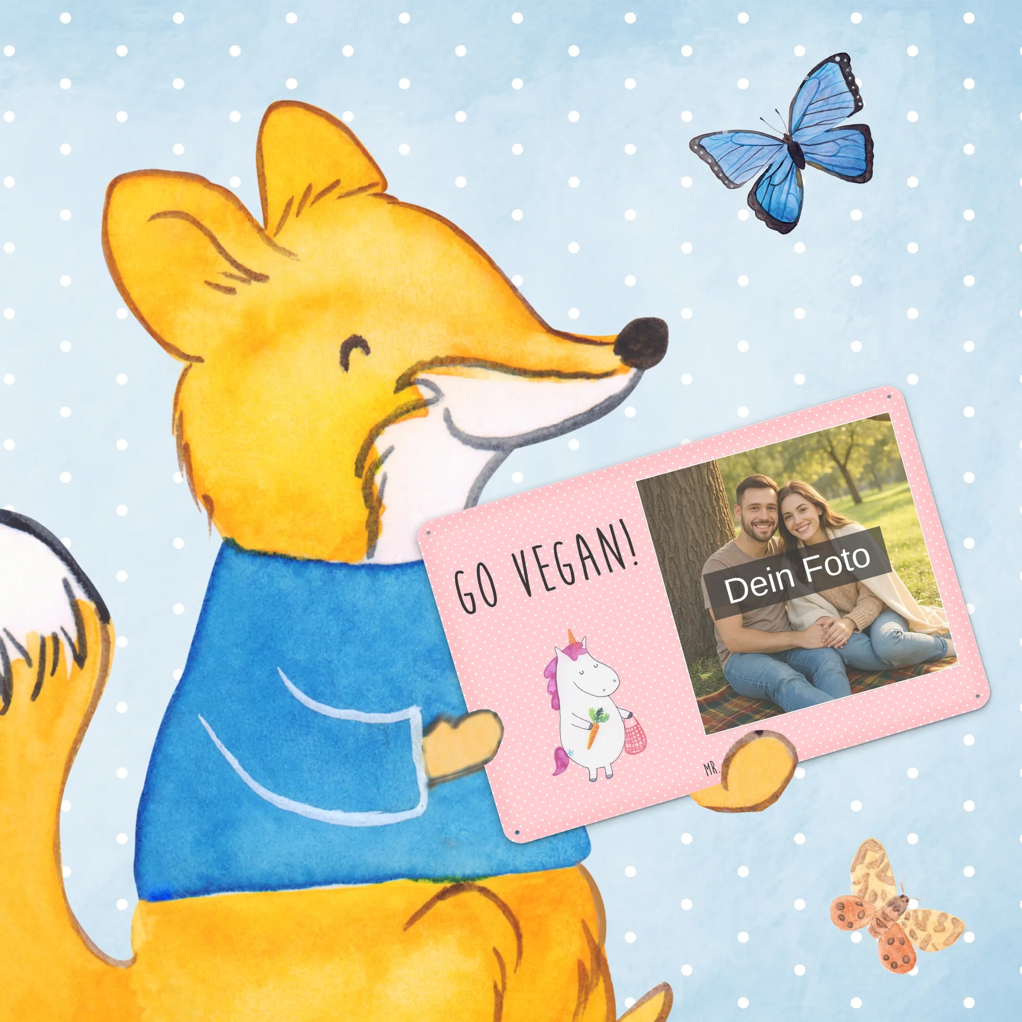 Personalized Photo Metal Sign unicorn Vegan - DIN A6