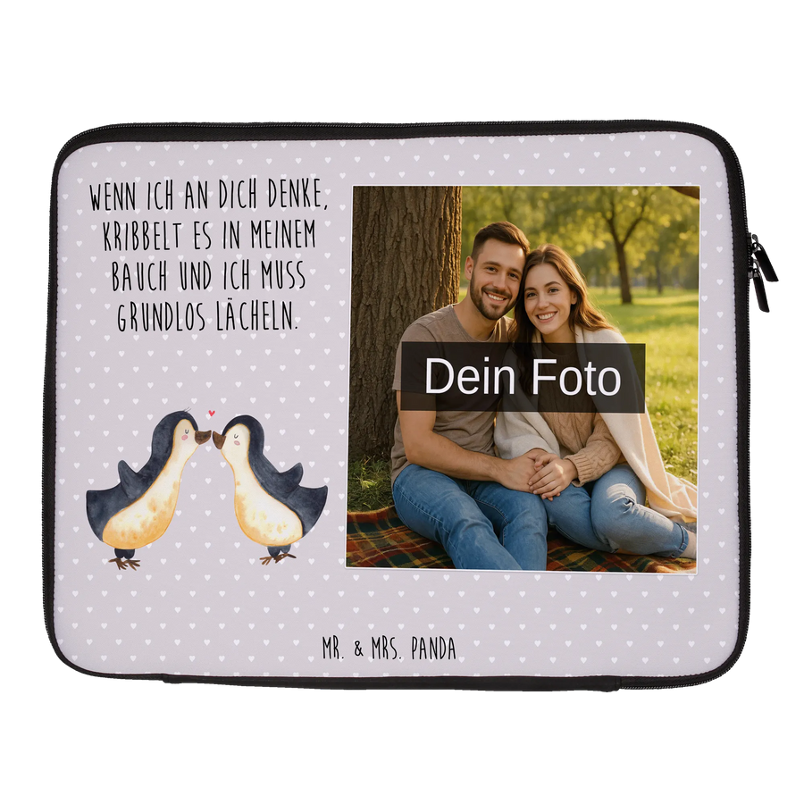 Entdecke die zauberhafte Welt unserer personalisierten Foto Notebook Tasche von Mr. & Mrs. Panda! Mit ihren Maßen von 280 mm x 200 mm x 303 mm ist sie perfekt für deinen Laptop oder dein Notebook geeignet. Hergestellt aus wasserabweisendem Neopren und Kunstfaser, schützt sie deinen wertvollen Begleiter vor Kratzern, Staub und anderen Schäden. Die Front- und Rückseite sind hochwertig mit den süßen Motiven und Sprüchen von Mr. & Mrs. Panda bedruckt, die dir während deiner Reisen ein Lächeln ins Gesicht zaubern. Dank des robusten Reißverschlusses hast du zudem leichten Zugriff von beiden Seiten. Mach es dir einfach und personalisiere deine Tasche mit deinem eigenen Wunschfoto! Achte darauf, dass dein Foto eine hohe Auflösung hat und der Bildausschnitt gut passt – so wird der Druck zu einem echten Highlight. Diese Tasche ist nicht nur stylisch, sondern auch strapazierfähig und ideal für unterwegs. Ein feuchtes Tuch reicht, um sie zu reinigen, und du solltest sie nicht in der Waschmaschine waschen. Überrasche dich selbst oder einen Freund mit dieser wundervollen, einzigartigen Notebook Tasche!
