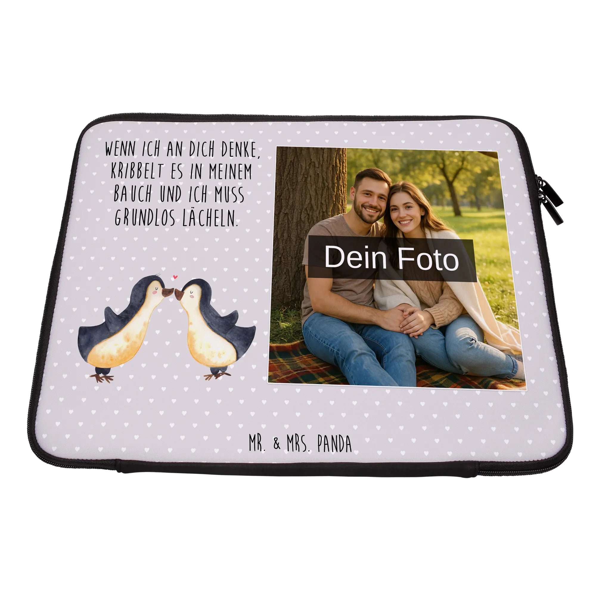 Personalisierte Foto Notebook Tasche Pinguine Kuss - 20 x 28 cm