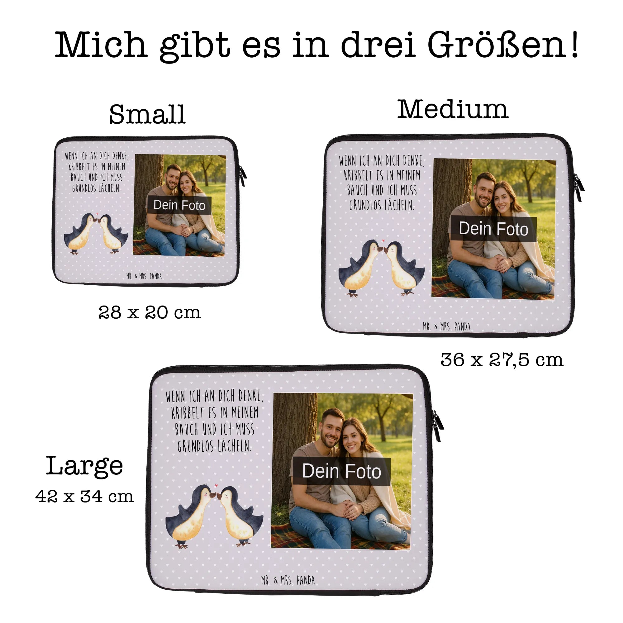 Entdecke unsere personalisierte Foto Notebook Tasche von Mr. & Mrs. Panda! Diese leichte und wunderschöne Tasche ist der perfekte Begleiter für dein Notebook oder Laptop. Mit den Maßen 360 mm x 270 mm x 30 mm bietet sie genügend Platz und ist aus wasserabweisendem Neopren gefertigt, das sich sanft anfühlt und gleichzeitig strapazierfähig ist. Die Front- und Rückseite sind liebevoll mit süßen Motiven und Sprüchen gestaltet, die von Mr. & Mrs. Panda stammen. Du kannst sie mit deinem eigenen Wunschfoto personalisieren! Achte darauf, ein hochauflösendes Bild zu wählen, um eine klare Druckqualität zu gewährleisten. Unser robuster Reißverschluss sorgt dafür, dass alles sicher verstaut ist, während der leichte Zugriff von beiden Seiten das Handling zum Kinderspiel macht. Diese Notebook Tasche bietet besten Schutz vor Kratzern, Staub und anderen Beschädigungen und ist ideal für unterwegs. Pflege sie ganz einfach mit einem feuchten Tuch, denn sie ist nicht waschmaschinenfest. Hebe dich von der Masse ab und mache dein Notebook zu einem Unikat mit unserer einzigartigen personalisierten Foto Notebook Tasche! Perfekt als Geschenk für Freunde oder für dich selbst.