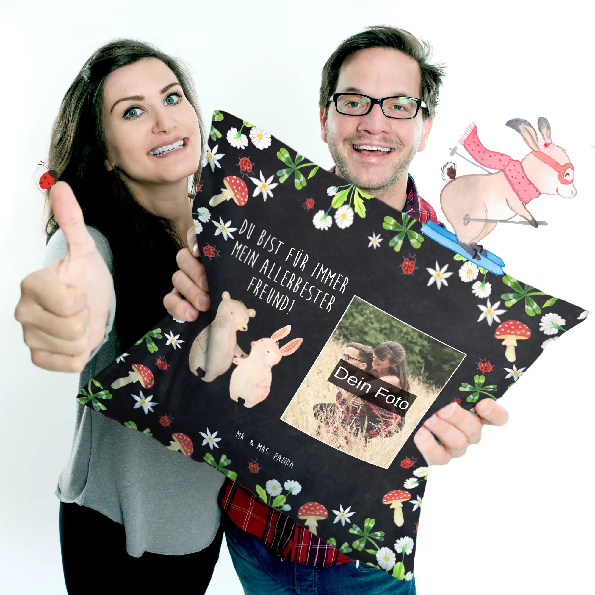 Personalized Photo Pillow bear and rabbit Embrace - Chalkboard