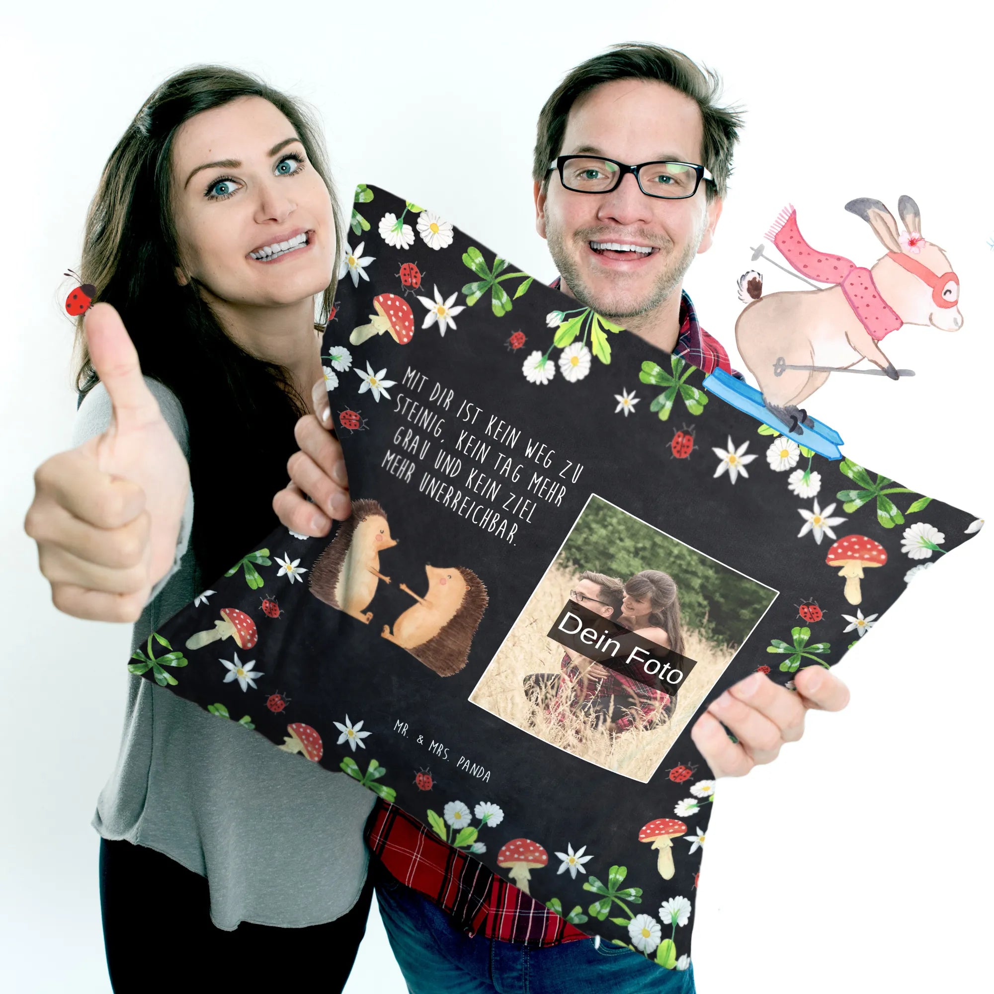 Personalized Photo Pillow Hedgehogs in love - Chalkboard