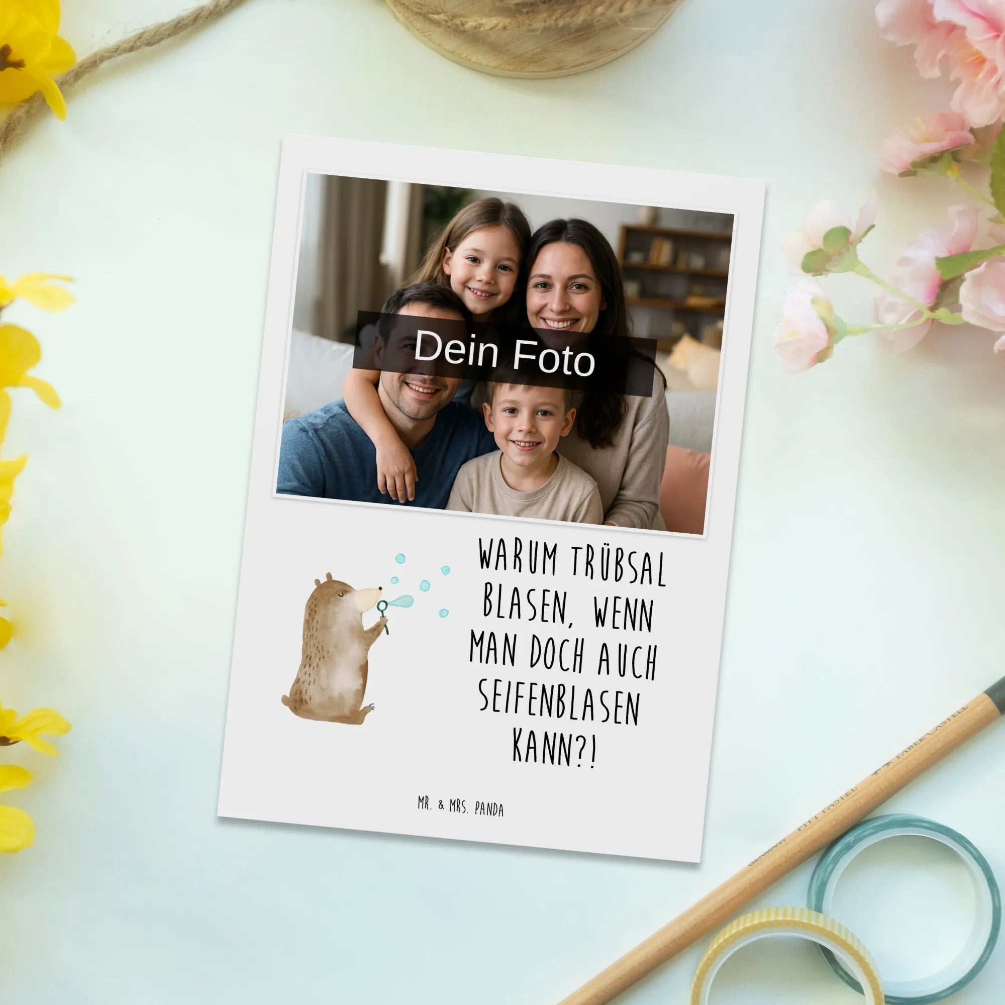 Personalized Photo Postcard bear soap bubbles – Mr. & Mrs. Panda