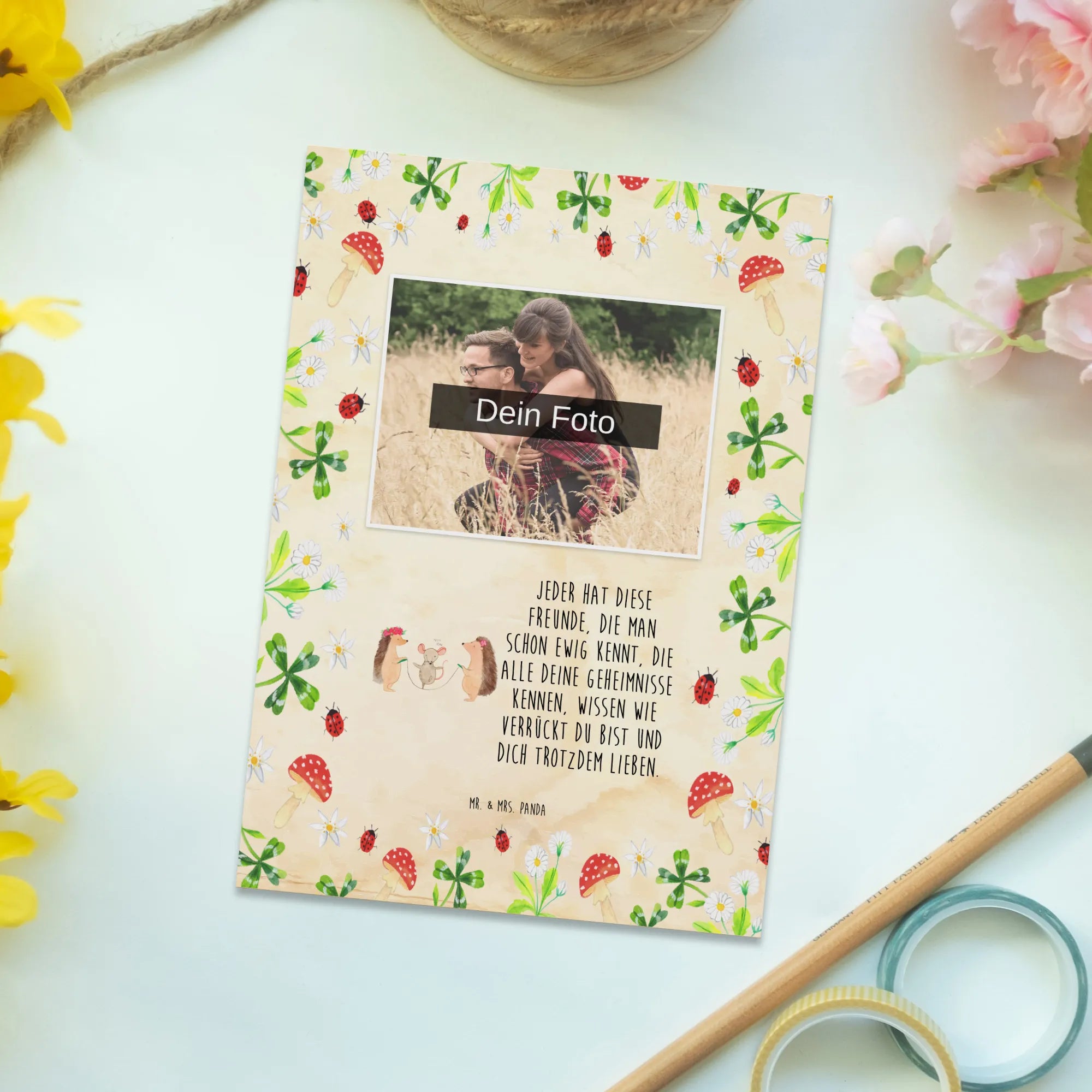 Personalized Photo Postcard Hedgehog skipping - Naturpapier