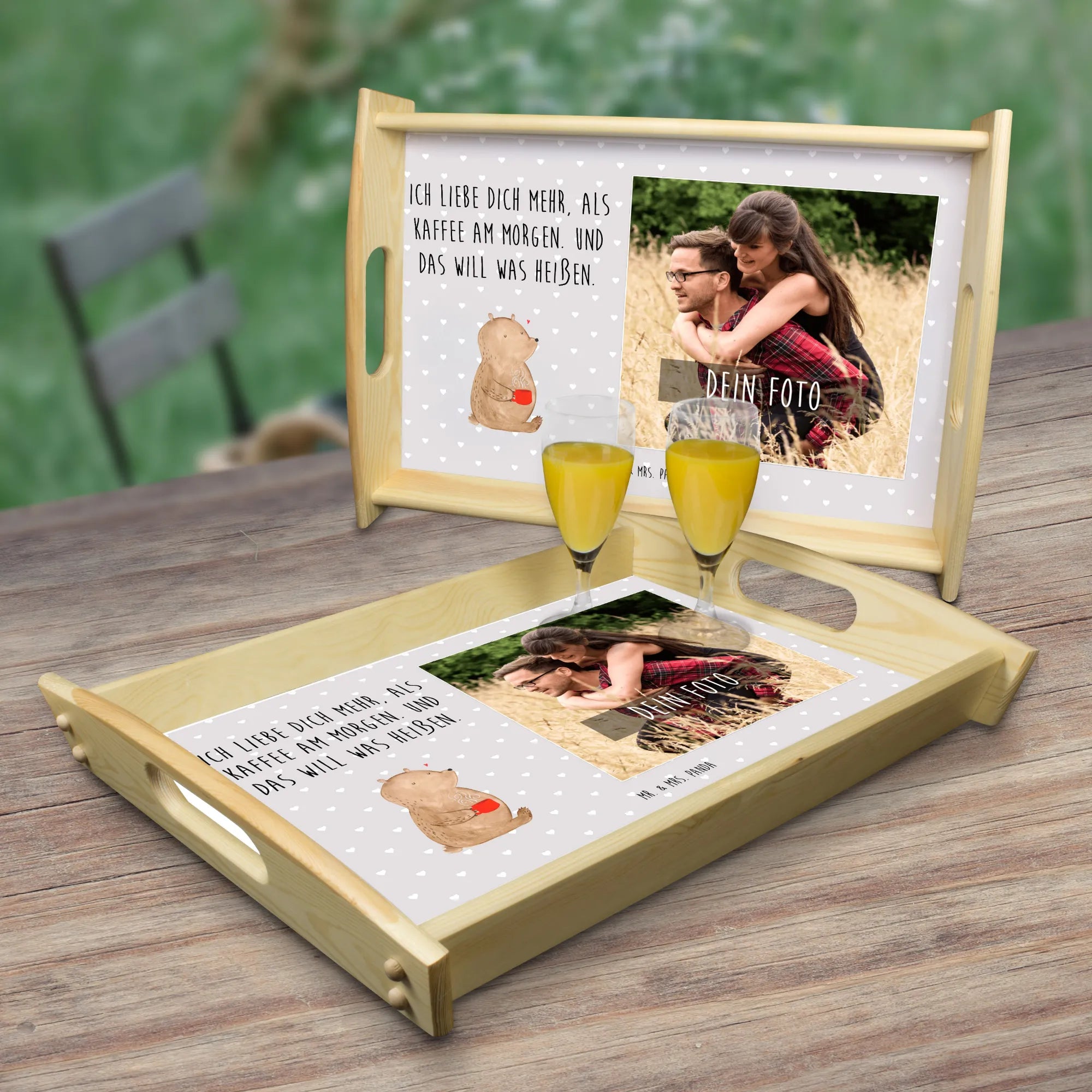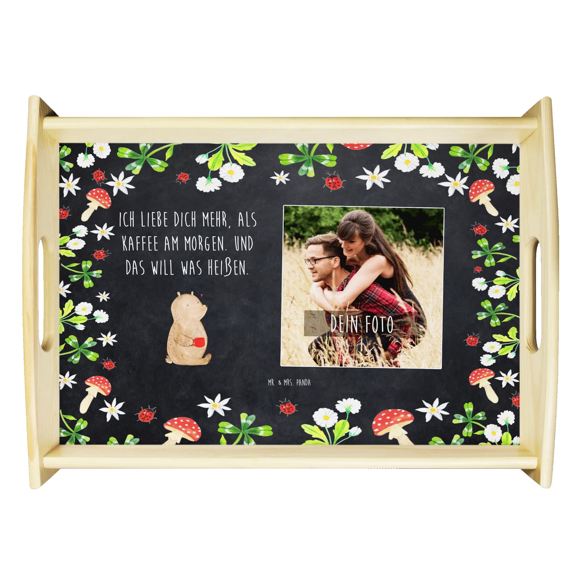 Personalized Photo Serving Tray bear morning coffee - Chalkboard