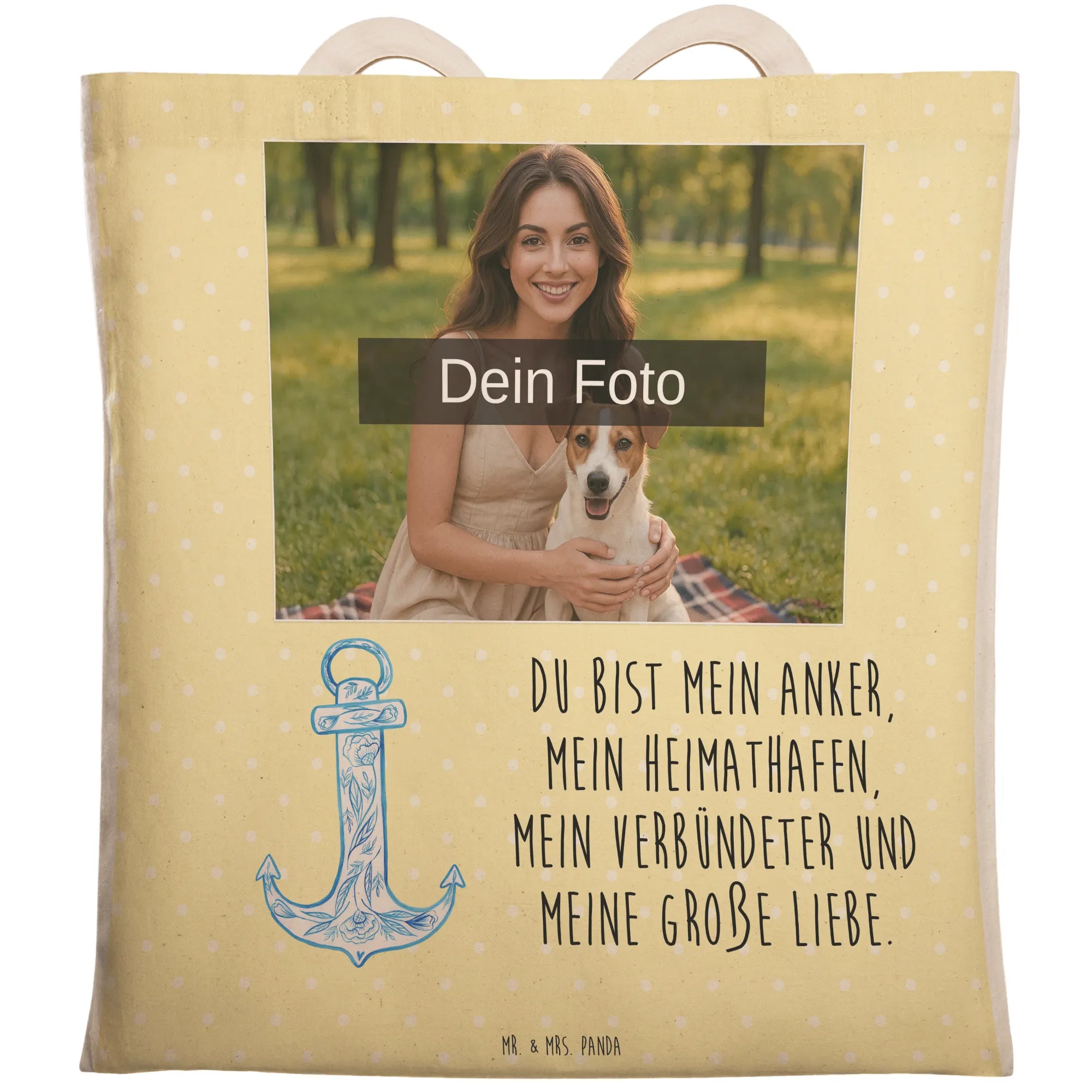 Mach deinen Einkauf zu einem besonderen Erlebnis mit der personalisierten Foto Einkaufstasche von Mr. & Mrs. Panda! Diese stilvolle Tasche misst 420 mm x 400 mm und ist aus langlebiger Kunstfaser gefertigt. Sie bringt süße Motive und Sprüche in dein Leben und bietet die Möglichkeit, dein Lieblingsfoto hochzuladen. So wird dein Einkauf einzigartig! Achte darauf, dass dein Bild in einer hohen Auflösung vorliegt, damit alles klar und deutlich dargestellt wird. Diese Tasche ist nicht nur besonders praktisch, sie ist auch robust, schmutzabweisend und einfach zu reinigen. Wir empfehlen eine sanfte Handwäsche, um die Langlebigkeit der Tasche zu garantieren. Perfekt für deine täglichen Einkäufe oder als Geschenk für deine Liebsten – hol dir deine individuelle Tasche von Mr. & Mrs. Panda!