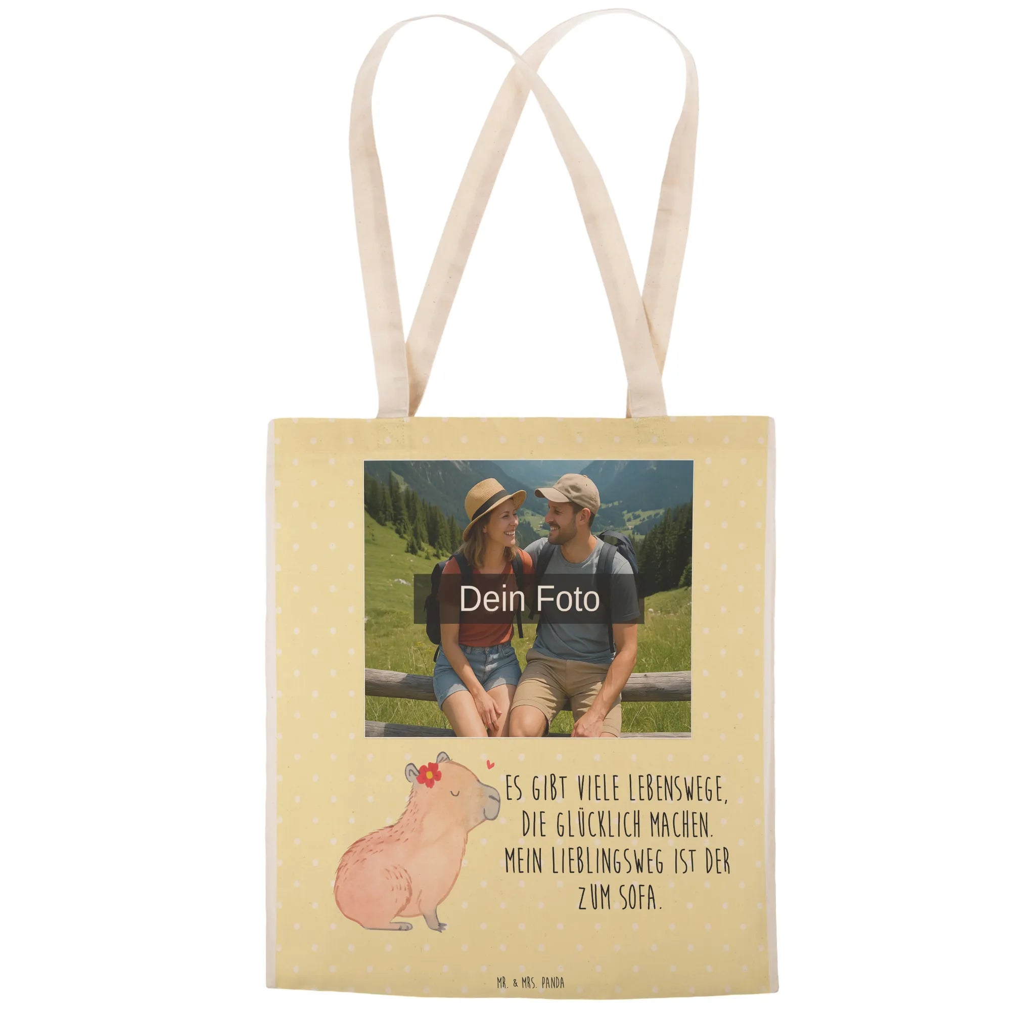 Personalisierte Foto Einkaufstasche Capybara Blume – Mr. & Mrs. Panda