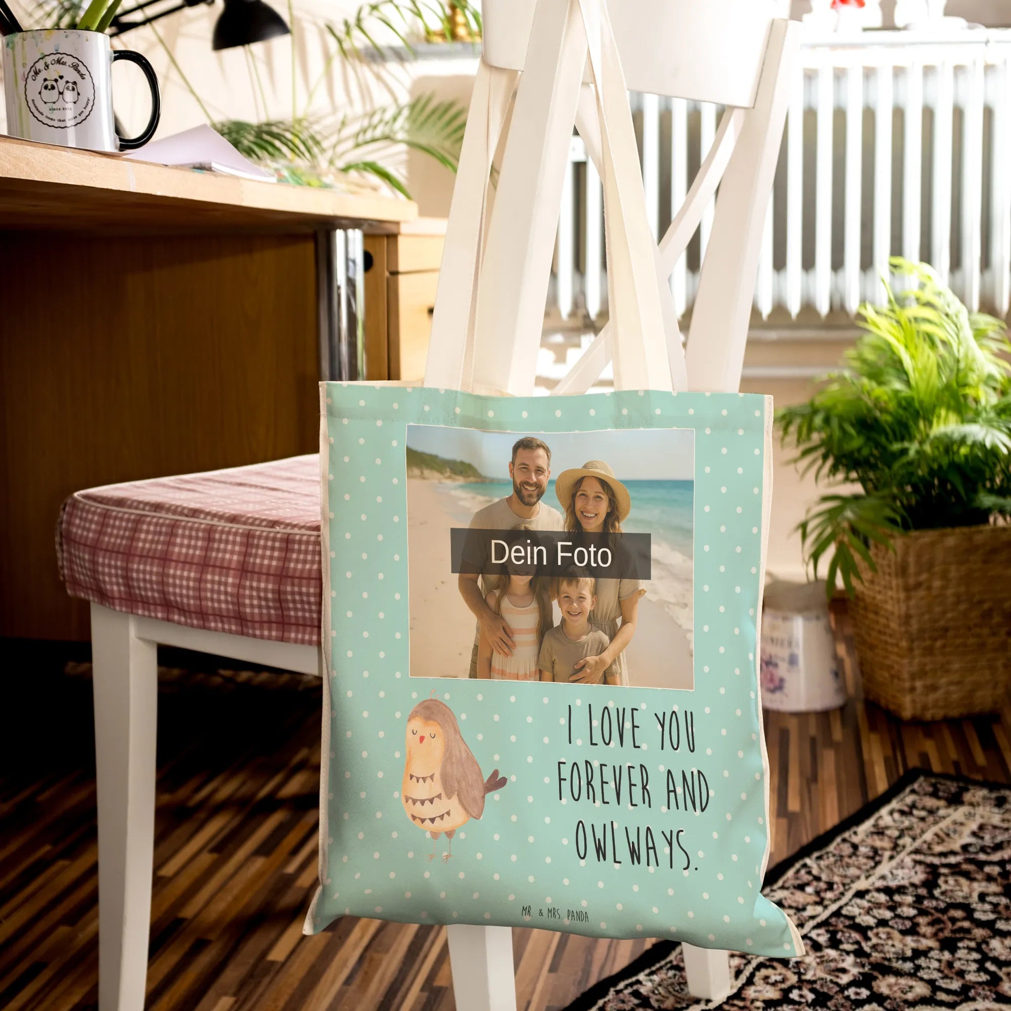 Personalisierte Foto Einkaufstasche Eule Zufrieden