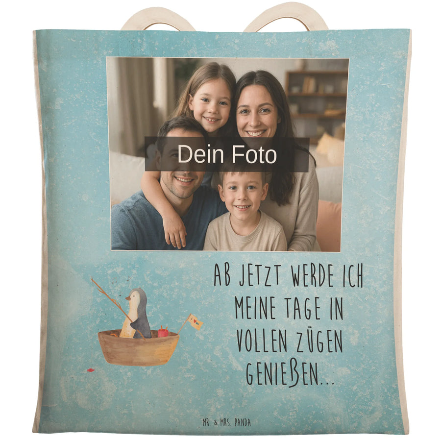 Personalisierte Foto Einkaufstasche Pinguin Angelboot
