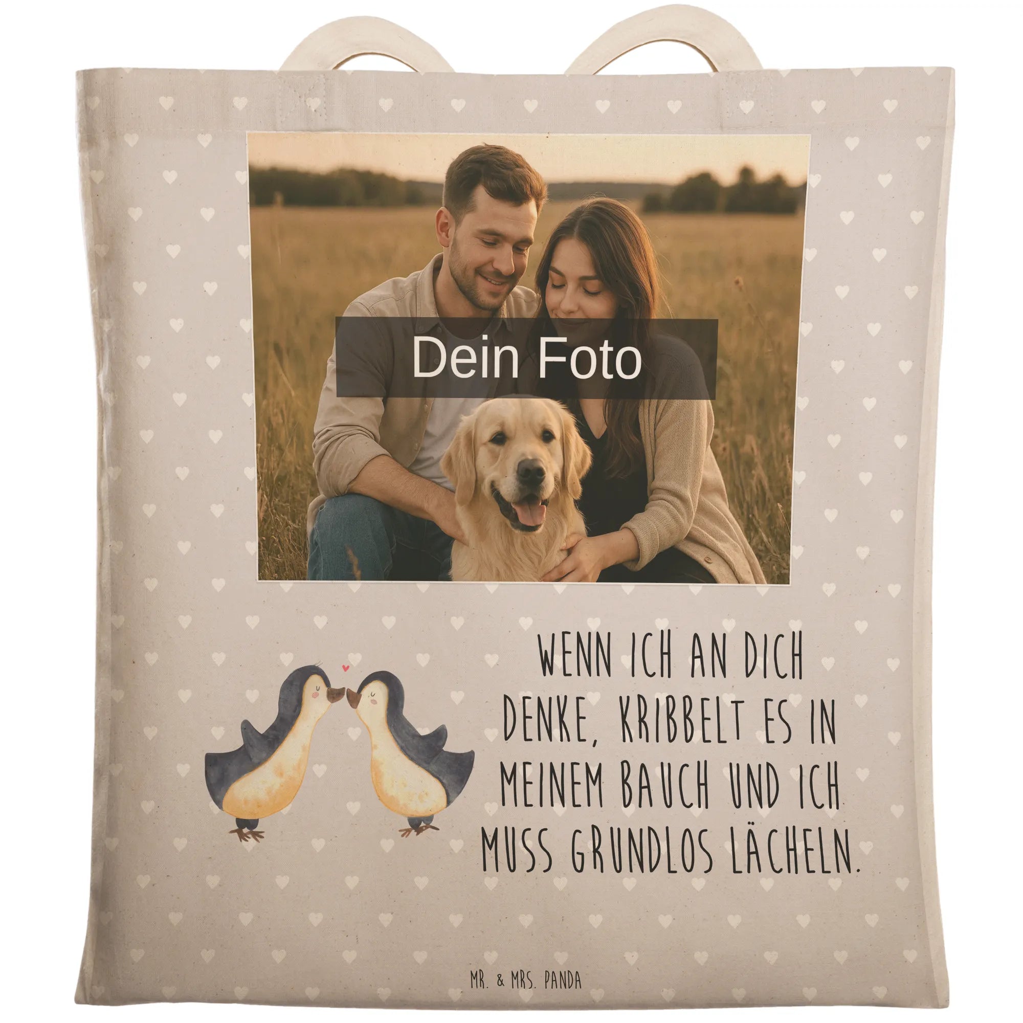 Personalisierte Foto Einkaufstasche Pinguine Kuss
