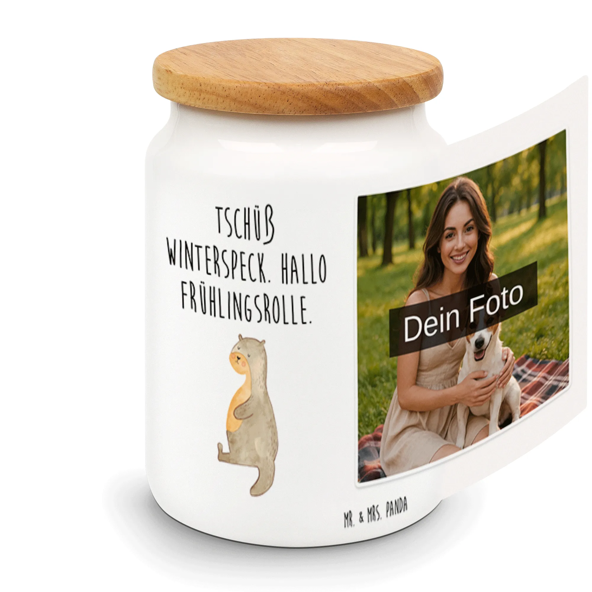 Visualisiere diesen Moment: Ein glücklicher Otter, dessen Bauch sanft vom Frühlingswind gestreichelt wird, sitzt am Ufer eines klaren Sees und nimmt alles, was das Leben bietet, mit einem breiten Lächeln an. 'Tschüß Winterspeck. Hallo Frühlingsrolle' verkörpert diesen Zustand der Akzeptanz und des In-sich-Selbst-Verliebens, ein Motiv, das direkt aus dem Herzen von Mr. & Mrs. Panda kommt. Es erinnert uns, das Leben in all seinen Facetten zu lieben und zu feiern.