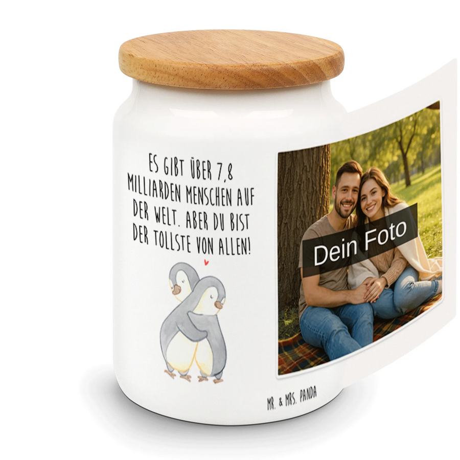 Personalisierte Foto Vorratsdose Pinguine Kuscheln