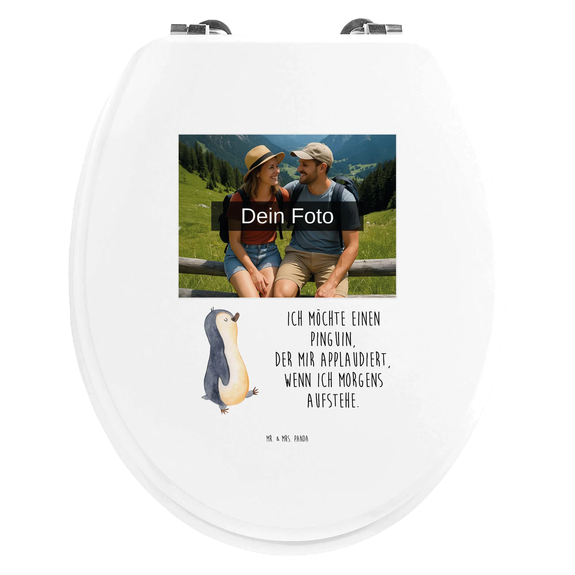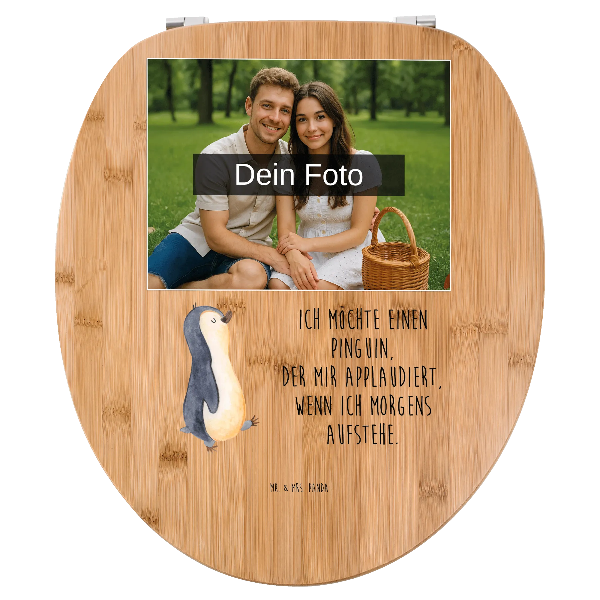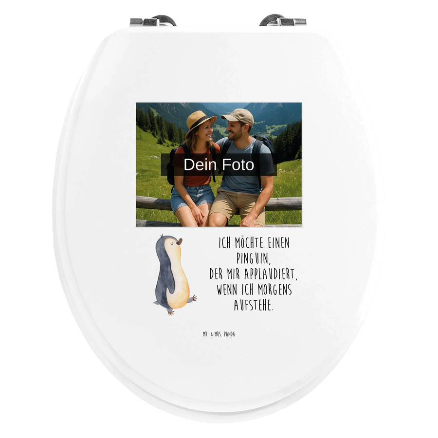 Erlebe die perfekte Kombination aus Stil und Komfort mit unserem personalisierten Foto WC Sitz Motiv von Mr. & Mrs. Panda! Mit den Maßen von 430 mm x 370 mm x 50 mm kommt dieser einzigartige Toilettensitz in zwei Varianten: hochwertigem Bambus Holz (braun) oder edlem MDF Holz (weiß). Der liebevoll gestaltete Sitz wird mit fröhlichen Motiven und Sprüchen bedruckt, die deinem Badezimmer eine besondere Note verleihen. Und das Beste? Du kannst ihn ganz nach deinem Geschmack mit deinem Wunschfoto gestalten! Achte darauf, dass das hochgeladene Bild in hoher Auflösung ist, um eine optimale Druckqualität zu garantieren. Achte darauf, dass der Bildausschnitt stimmt, damit alles gut zur Geltung kommt. Passend für alle Euro-WC-Becken und inkl. Montageset, bietet dieser WC Sitz nicht nur hohen Sitzkomfort, sondern macht dein Bad auch zu einem echten Hingucker. Vor allem an kalten Tagen kannst du den angenehmen Komfort genießen. Pflege ihn einfach mit einem feuchten Tuch und milder Seife – so bleibt er lange schön! Mit einem langlebigen UV-Druck bleibt dein persönliches Motiv immer strahlend! Leg dir jetzt diesen besonderen Toilettensitz zu und gestalte dein Bad nach deinen Vorstellungen!