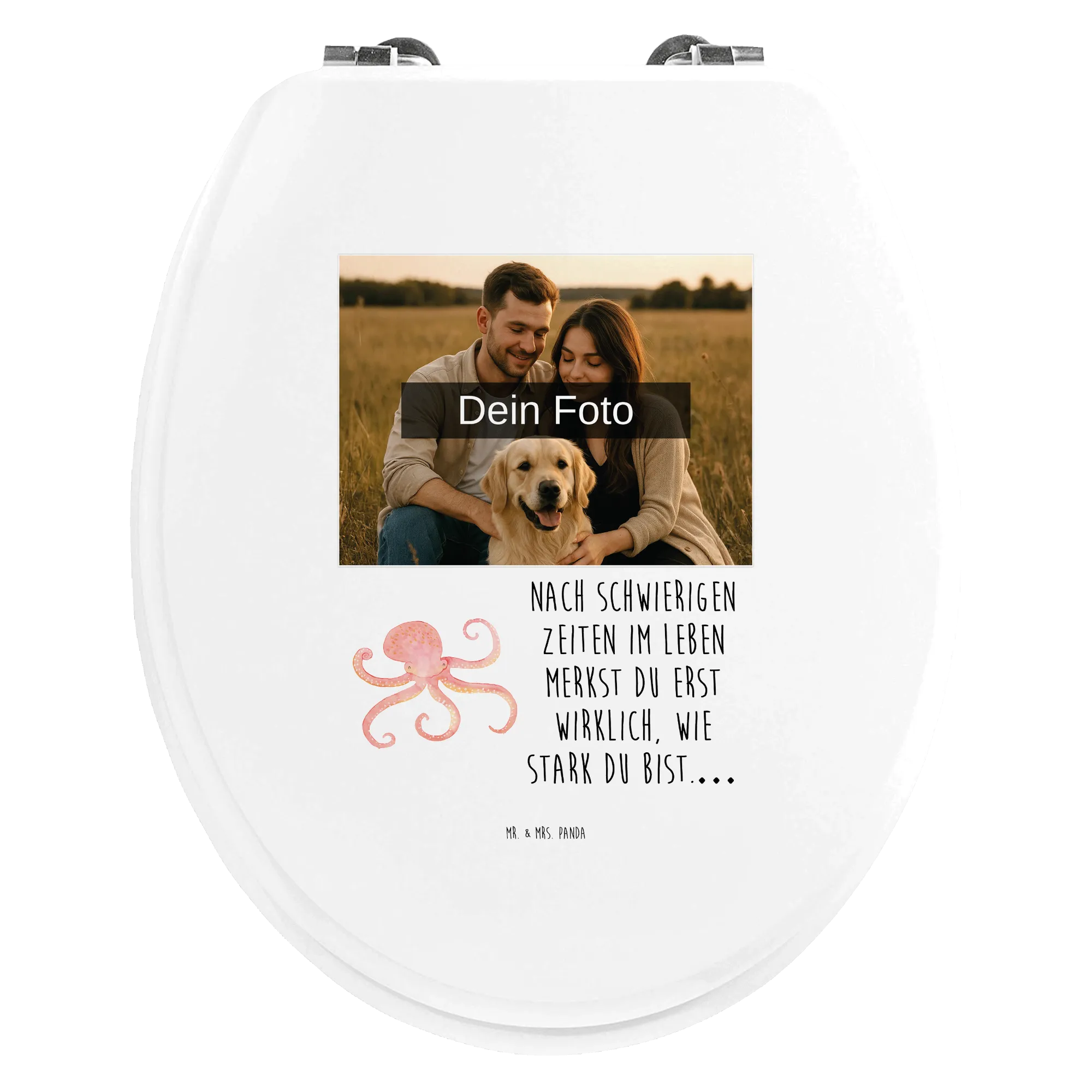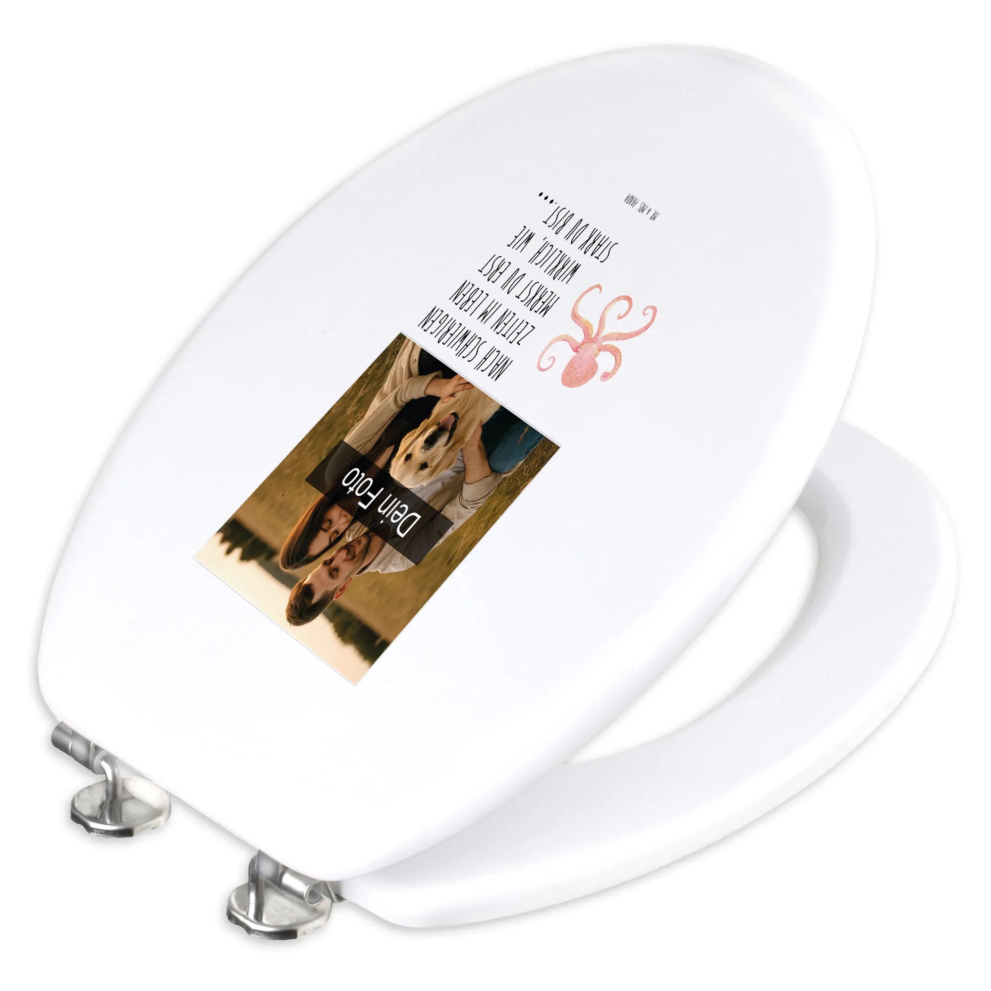 Personalisierter Foto WC Sitz Motiv Tintenfisch - Hartfaser Holzkern Weiß
