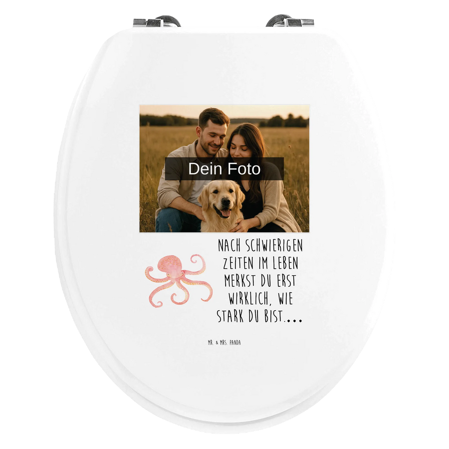 Erlebe die perfekte Kombination aus Stil und Komfort mit unserem personalisierten Foto WC Sitz Motiv von Mr. & Mrs. Panda! Mit den Maßen von 430 mm x 370 mm x 50 mm kommt dieser einzigartige Toilettensitz in zwei Varianten: hochwertigem Bambus Holz (braun) oder edlem MDF Holz (weiß). Der liebevoll gestaltete Sitz wird mit fröhlichen Motiven und Sprüchen bedruckt, die deinem Badezimmer eine besondere Note verleihen. Und das Beste? Du kannst ihn ganz nach deinem Geschmack mit deinem Wunschfoto gestalten! Achte darauf, dass das hochgeladene Bild in hoher Auflösung ist, um eine optimale Druckqualität zu garantieren. Achte darauf, dass der Bildausschnitt stimmt, damit alles gut zur Geltung kommt. Passend für alle Euro-WC-Becken und inkl. Montageset, bietet dieser WC Sitz nicht nur hohen Sitzkomfort, sondern macht dein Bad auch zu einem echten Hingucker. Vor allem an kalten Tagen kannst du den angenehmen Komfort genießen. Pflege ihn einfach mit einem feuchten Tuch und milder Seife – so bleibt er lange schön! Mit einem langlebigen UV-Druck bleibt dein persönliches Motiv immer strahlend! Leg dir jetzt diesen besonderen Toilettensitz zu und gestalte dein Bad nach deinen Vorstellungen!