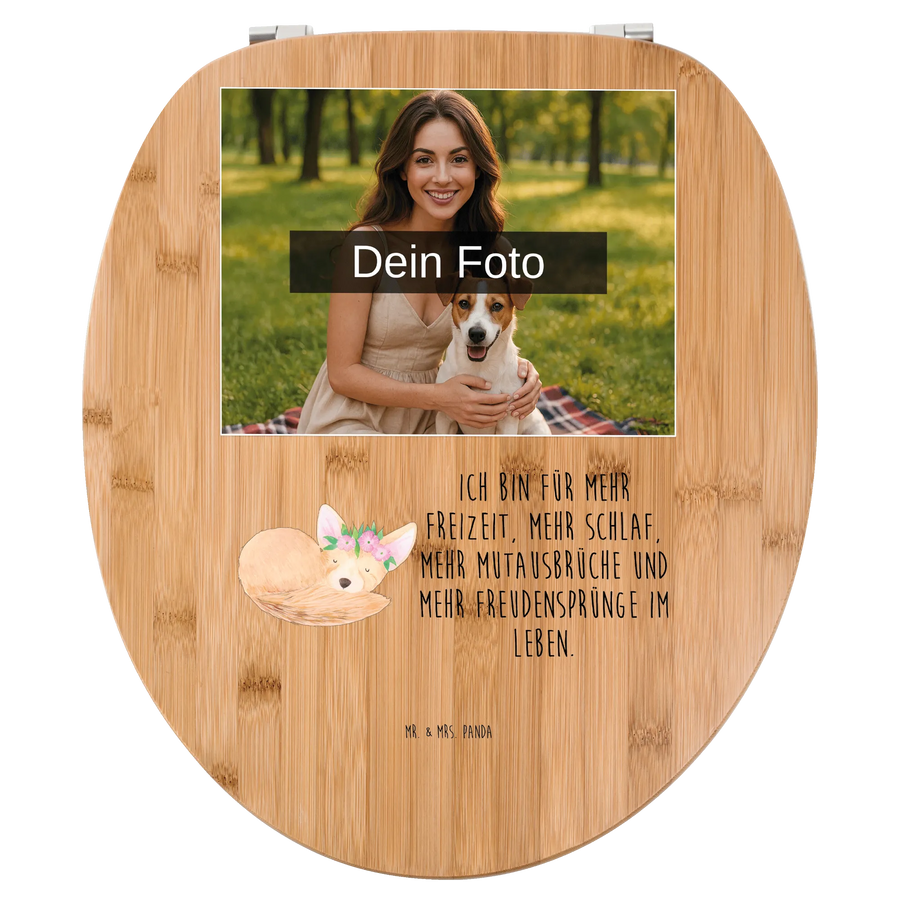 Mache dein Badezimmer zu einem Ort voller Freude mit unserem personalisierten Foto WC Sitz Motiv von Mr. & Mrs. Panda! Dieses einzigartige Möbelstück misst 430 mm x 370 mm x 50 mm und ist entweder aus edlem Bambus Holz (braun) oder praktischem MDF Holz (weiß) erhältlich. Der Sitz wird mit bezaubernden Motiven und fröhlichen Sprüchen bedruckt, die dein Bad in einen fröhlichen Raum verwandeln. Aber das Beste daran? Du kannst ihn mit deinem persönlichen Wunschfoto gestalten! Denk daran, dass das hochgeladene Bild in guter Auflösung sein sollte, damit alles optimal zur Geltung kommt. Dieser WC Sitz passt auf jede Euro-WC-Becken und wird mit sämtlichem Befestigungsmaterial geliefert. Er ist nicht nur angenehm und wärmespeichernd, sondern lässt sich auch einfach reinigen – ein feuchtes Tuch und milde Seife genügen! Mit dem langlebigen UV-Druck bleibt dein persönliches Motiv auch viele Jahre strahlend schön. Hol dir diesen einmaligen Toilettensitz und bringe gute Laune ins Bad!