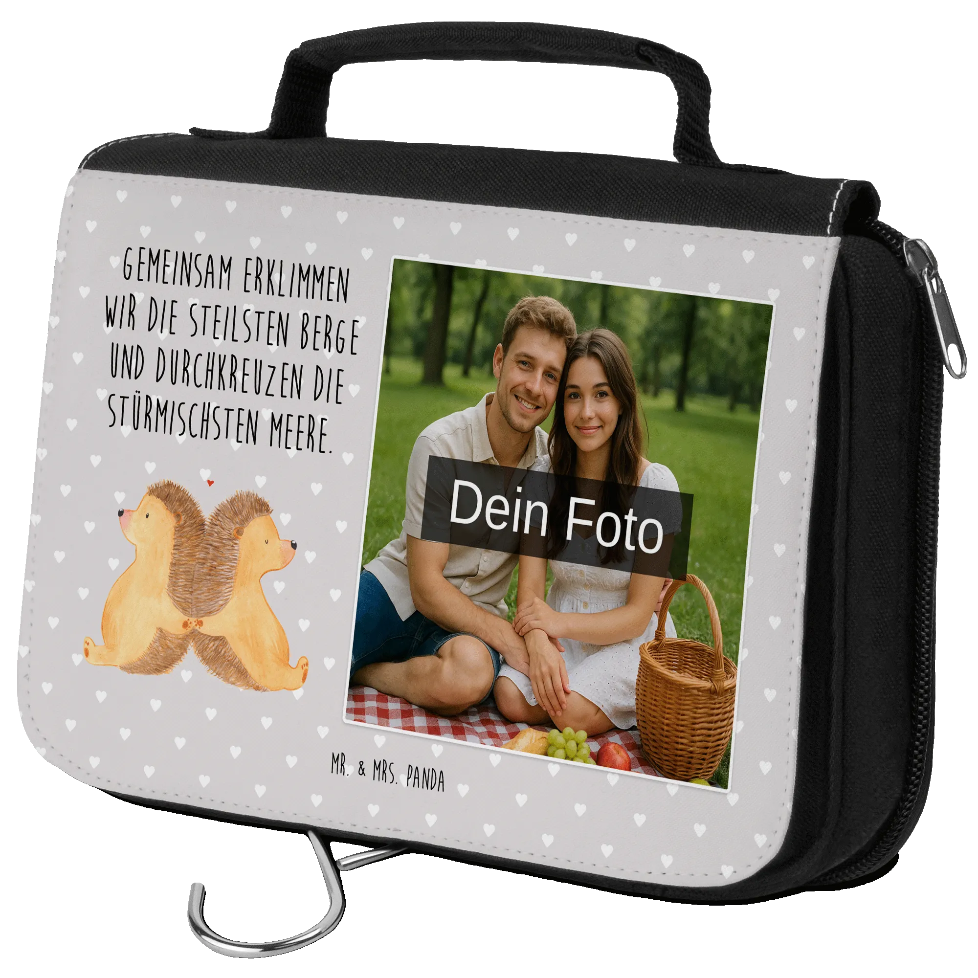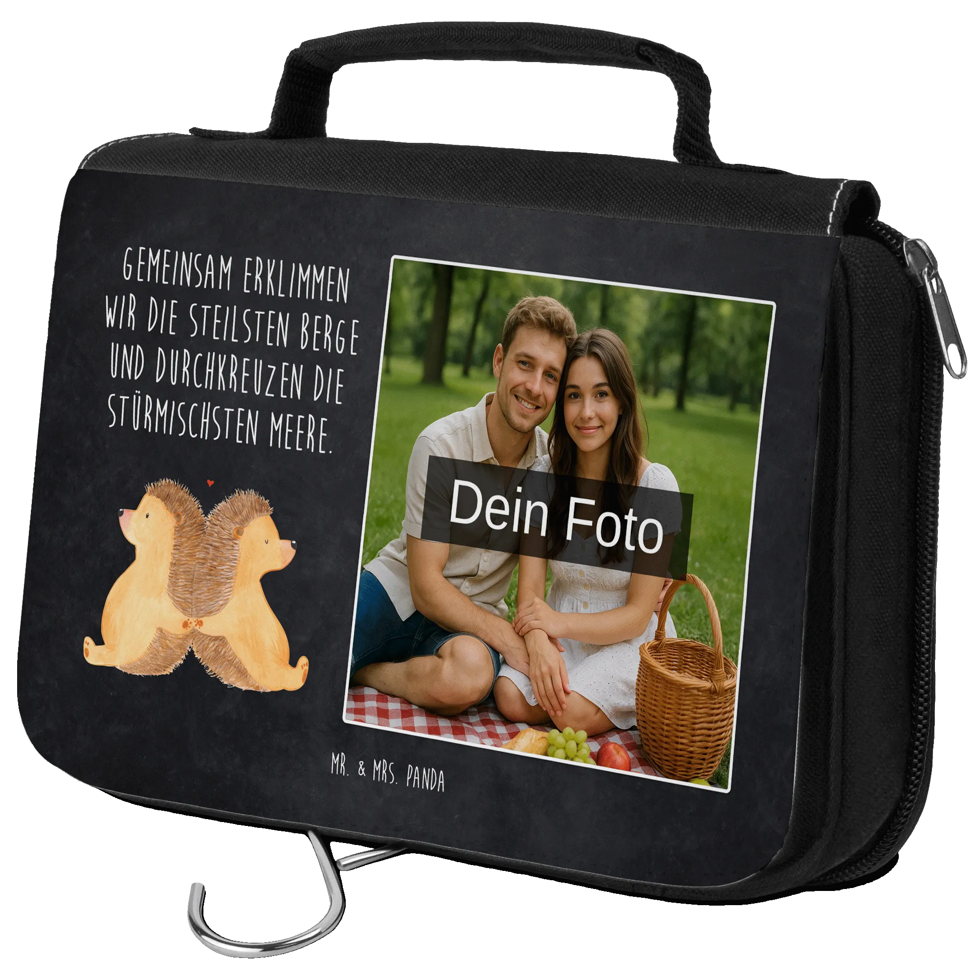 Personalisierter Foto Kulturbeutel Igel händchenhaltend - Kreidetafel