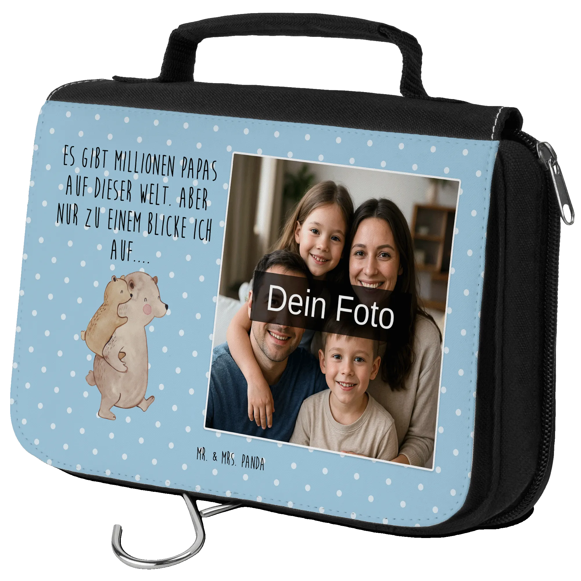 Personalisierter Foto Kulturbeutel Papa Bär - Grau Pastell