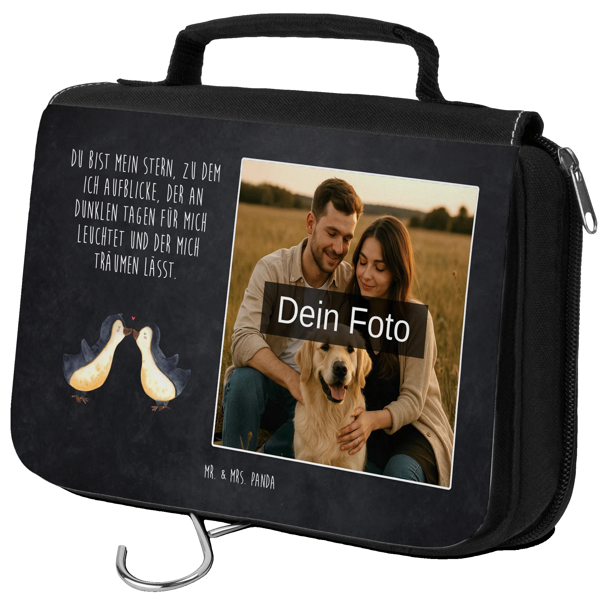 Personalisierter Foto Kulturbeutel Pinguin Liebe - Grau Pastell